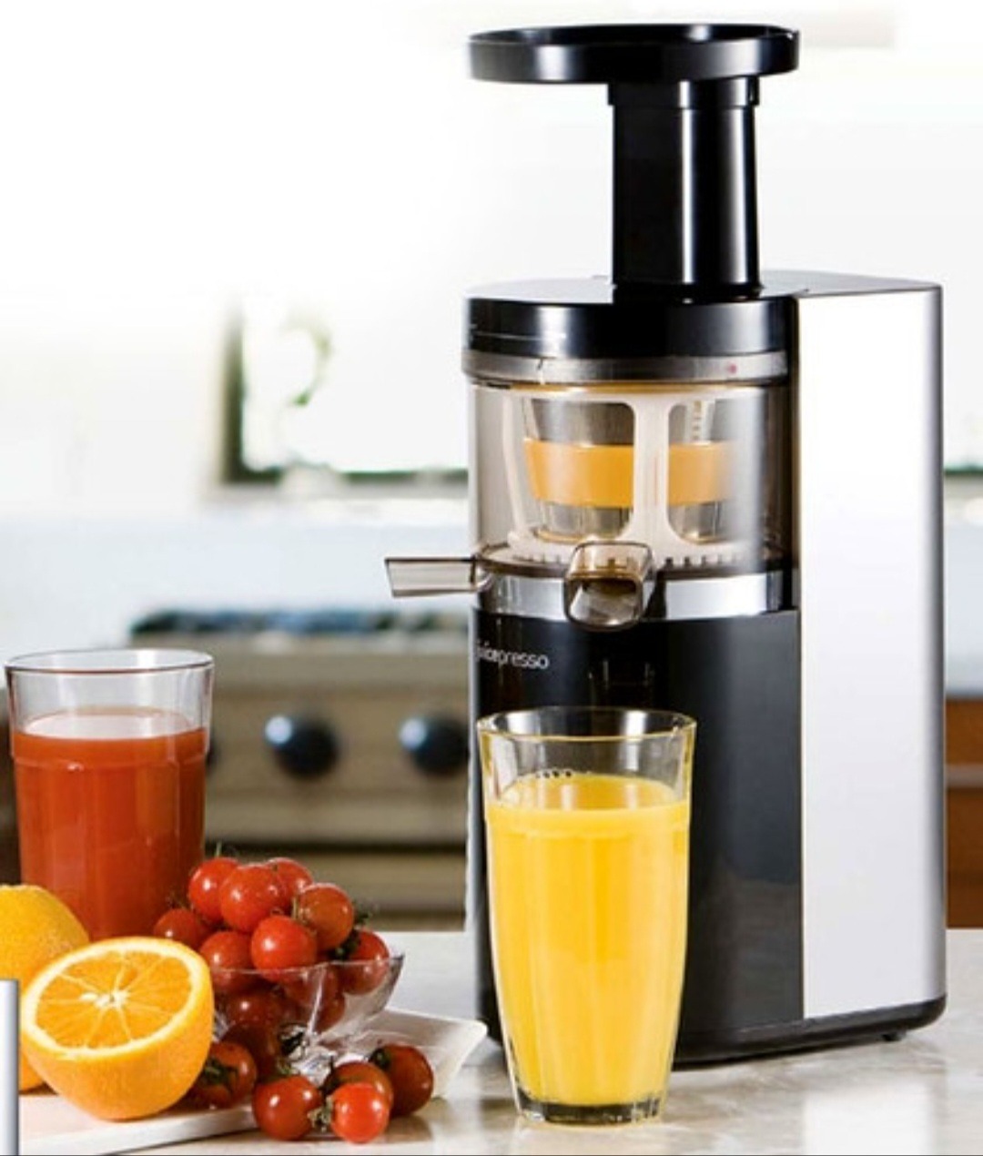 سلام دستگاه juicepresso اصل کره مارک coway که آبمیوه رو با بالاترین فیبر میوه به شما تحویل میده و نه تنها از افزایش قند خون جلوگیری میکنه بلکه خواص کامل فیبر میوه رو نیز حفظ میکنه و با گیربکس بسیار قدرتمند آب تمام میوه هارو میگیره حتی گیلاس و آلبالو که البته بهتره اینکار انجام نشه چون هسته کاملا له میشه و طعم تلخ هسته داخل آب میوه میشه .
