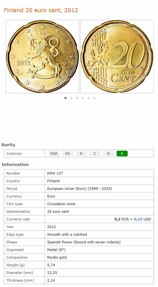 سکه 20 سنت یورو فنلاند 2012 (کمیاب)