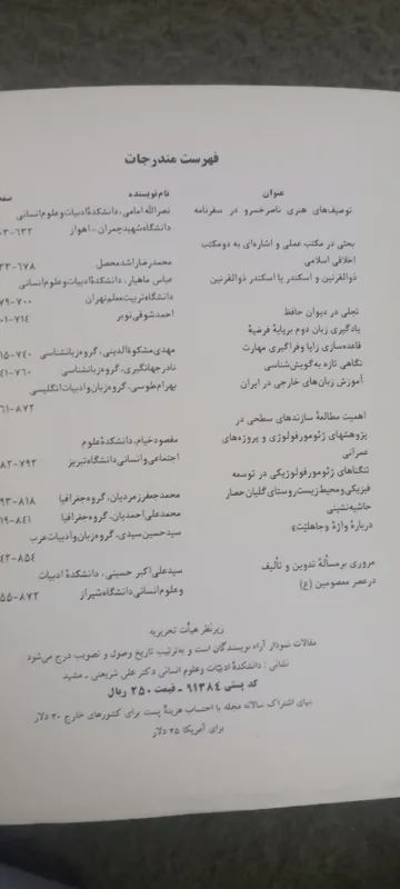 مجله دانشکده ادبیات علوم انسانی دانشگاه فردوسی مشهد 269 صفحه جلد شومیز قطع وزیری دارای مقالات علمی بسیار از استادان برجسته دانشگاه مشهد موضوع کتاب را در تصاویر ببینید