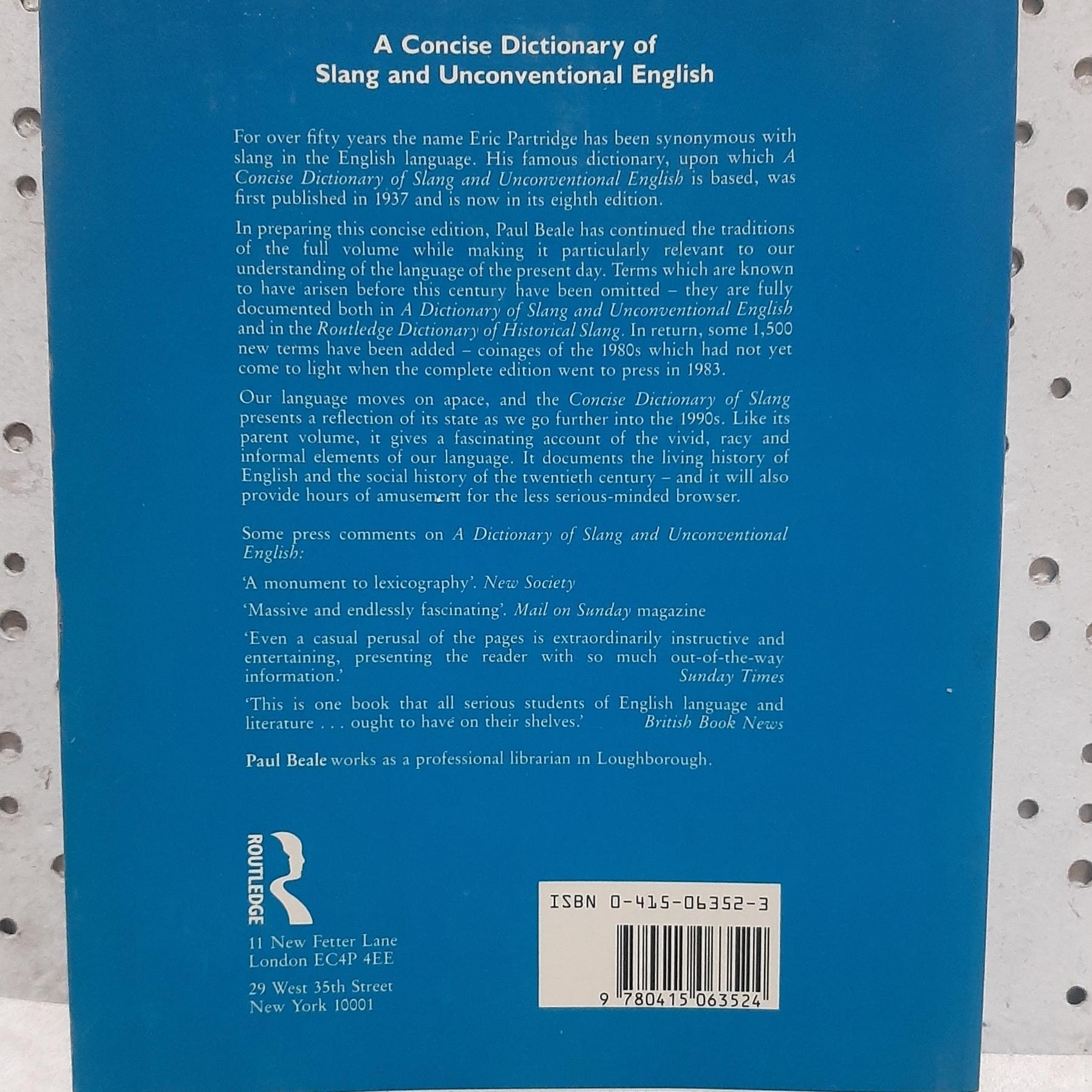 فرهنگ مختصر اصطلاحات عامیانه و نامتعارف انگلیسی - زبان انگلیسی - ویرایش جدید - چاپ انگلستان - چاپ سال 1989 میلادی - بین وزیری و رحلی - شومیز - 534 ص