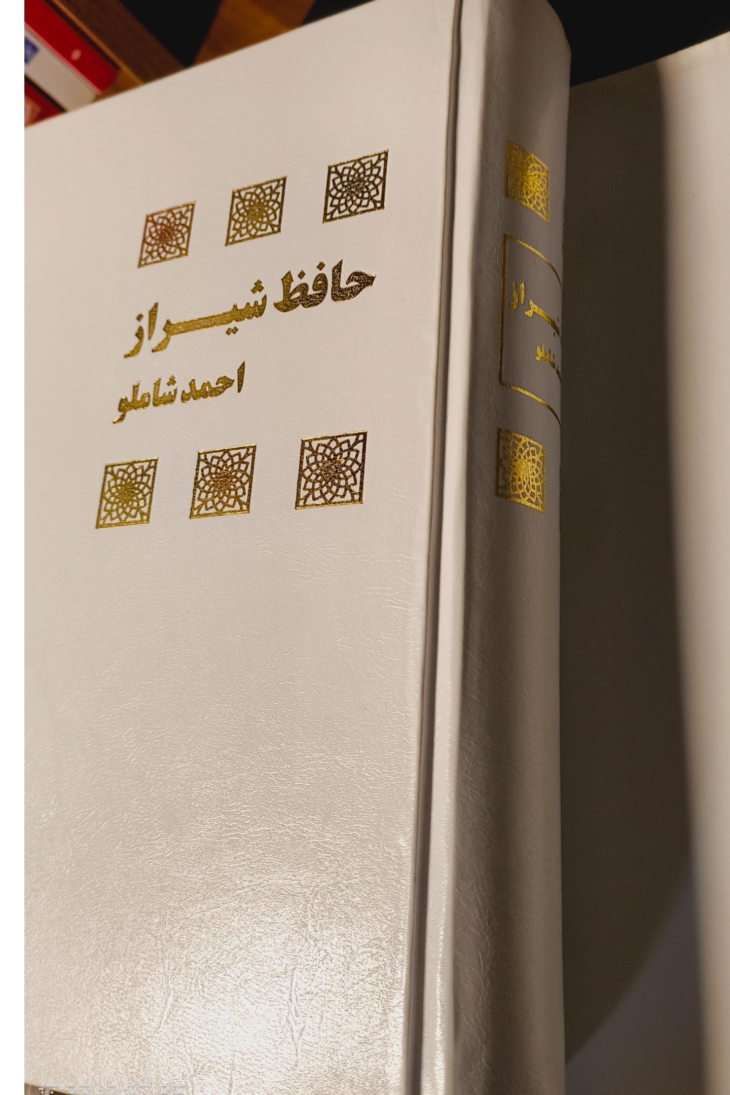 دیوان حافظ به روایت احمد شاملو، چاپ 1400، وزیری جلد گالینگور سفید زرکوب روکش دار کاغذ بالک.