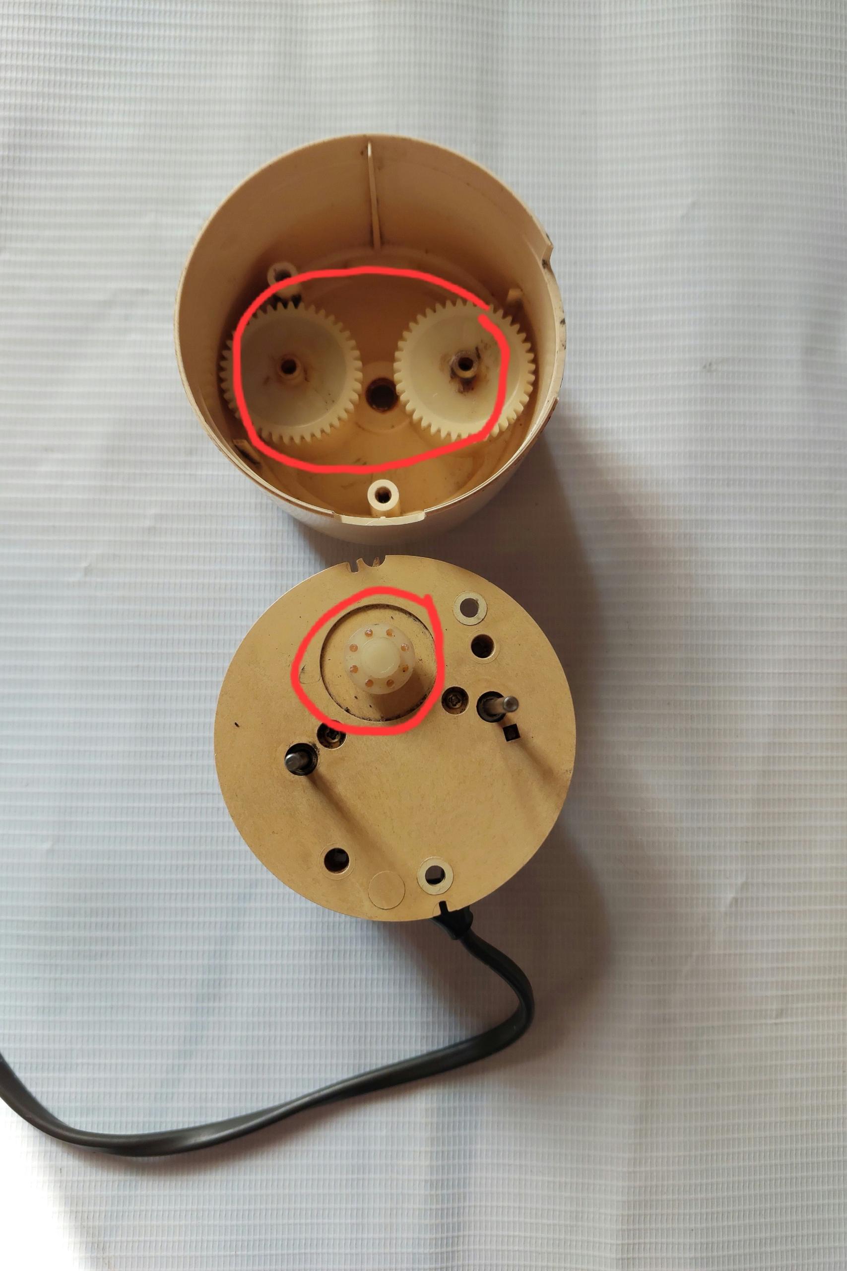 همان طور که در تصویر آخر مشخص شده است، یک چرخدنده ژله ای وجود داشته است که بین دو چرخدنده بالایی اتصال برقرار می کرده است که به مرور زمان و در اثر گذشت زمان از بین رفته است.