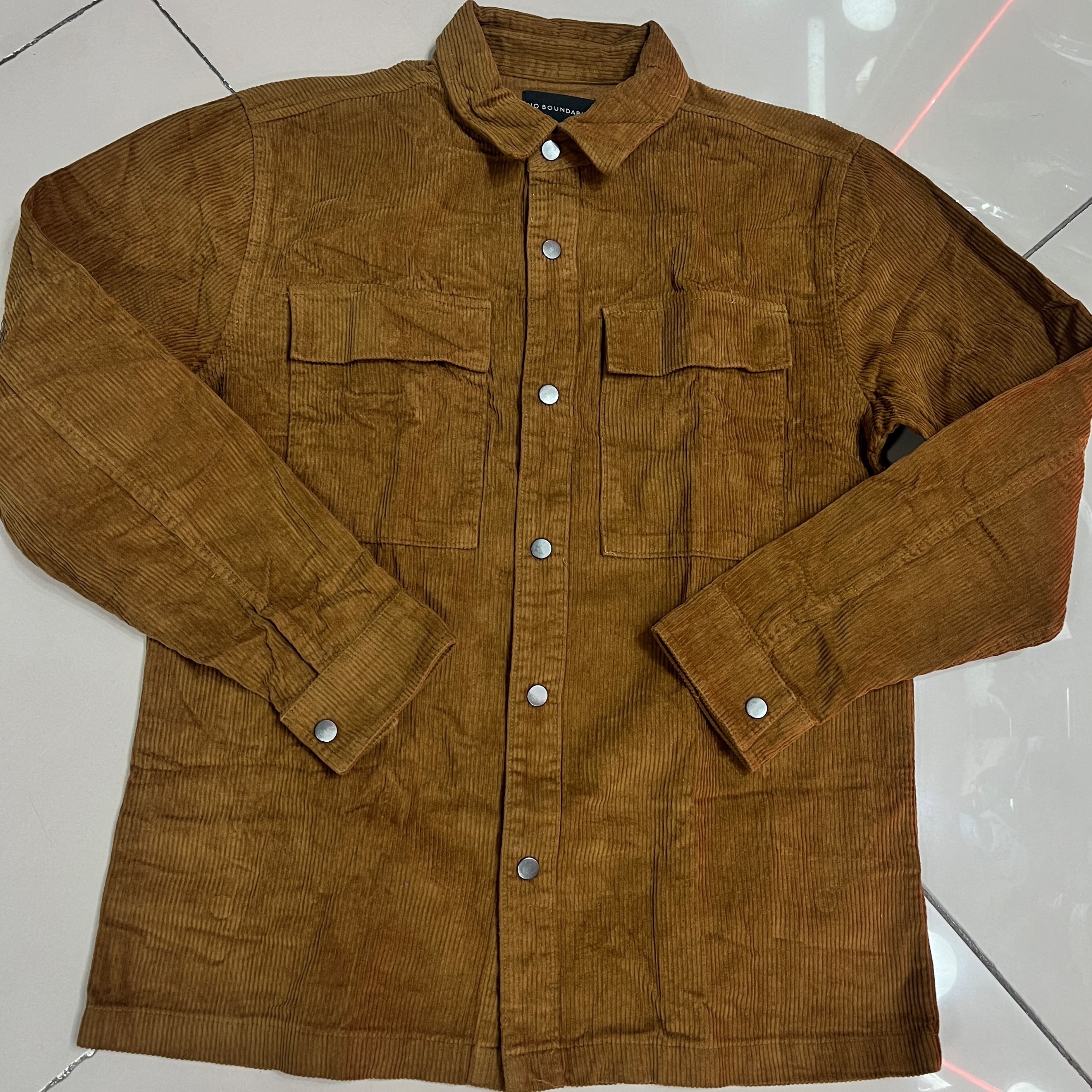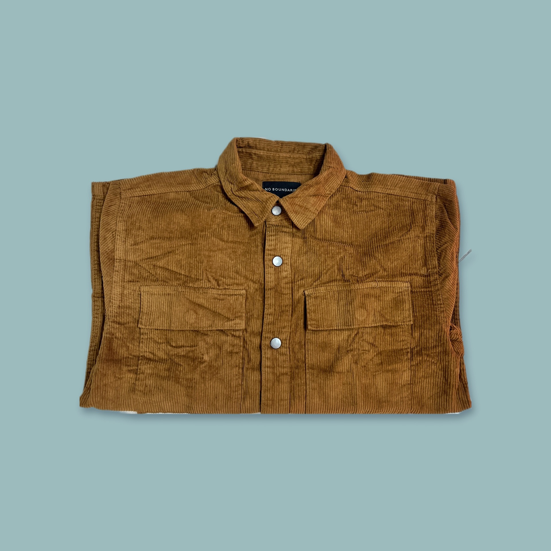 پیراهن مخمل دو جیب سفارش اروپا تولید بنگلادش برند معتبر NO BOUNDARIES بافت درشت مخصوص فصل زمستان قهوه ای پررنگ