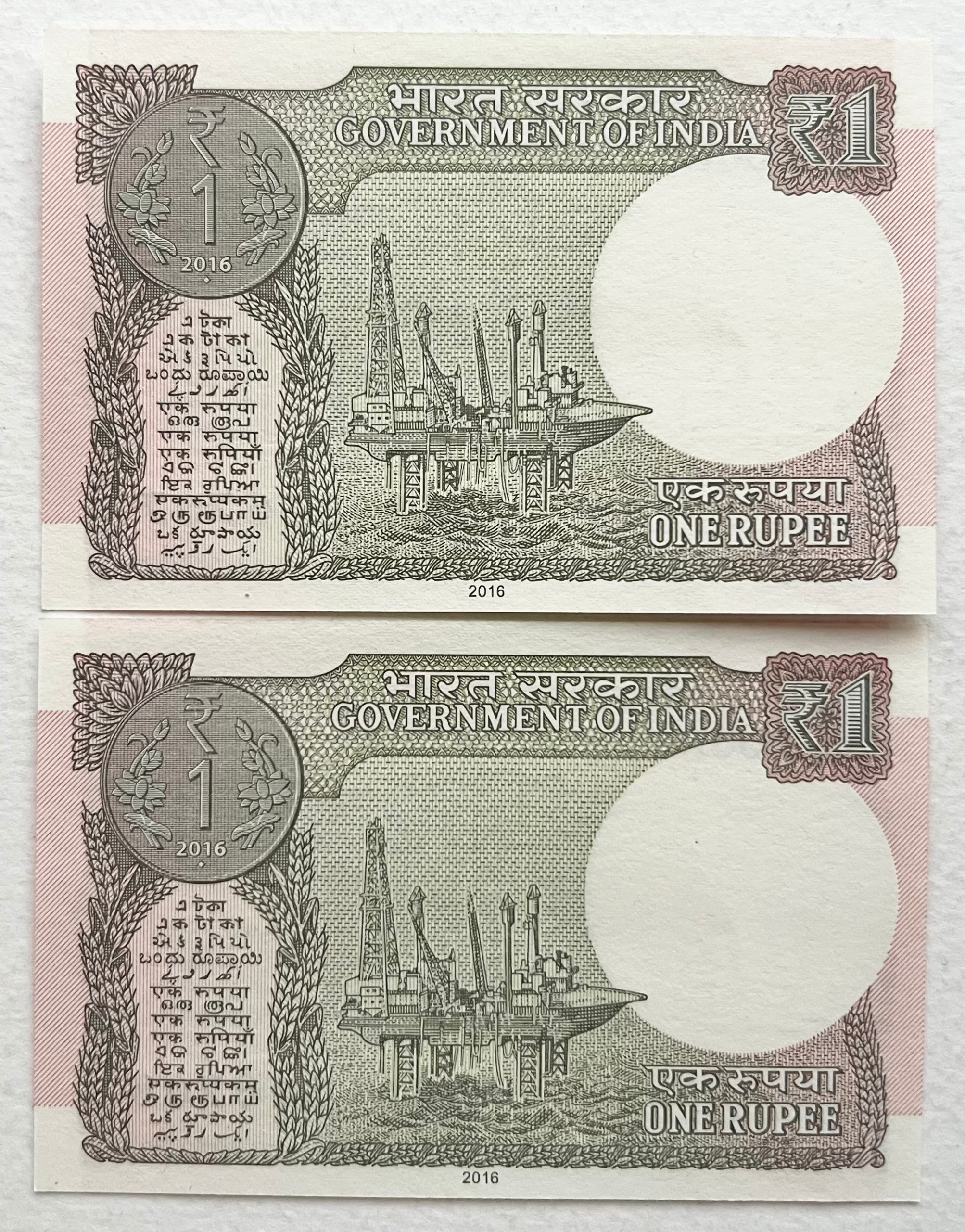 جفت اسکناس زیبای خارجی 1 روپیه جدید هند 2016 (99%)