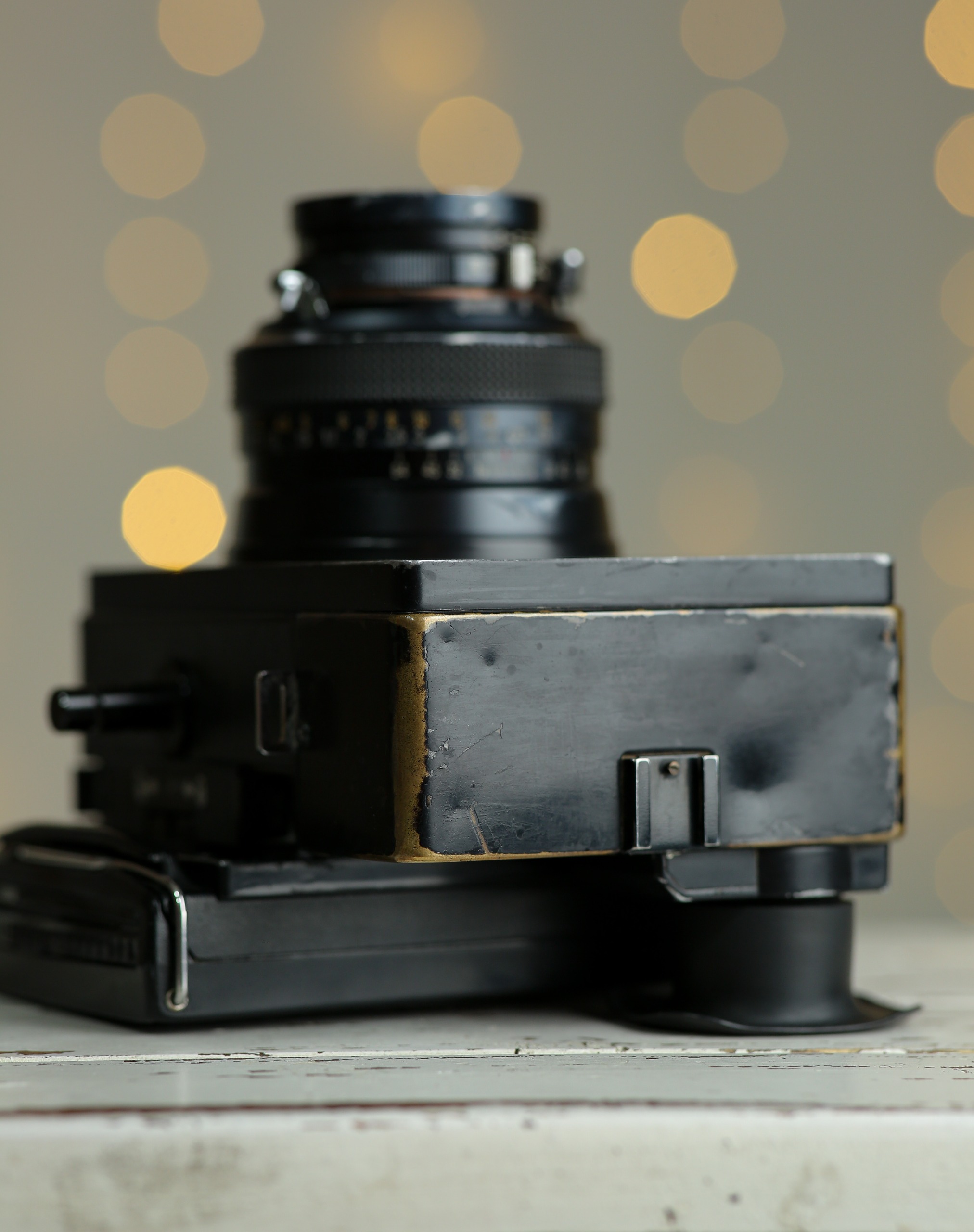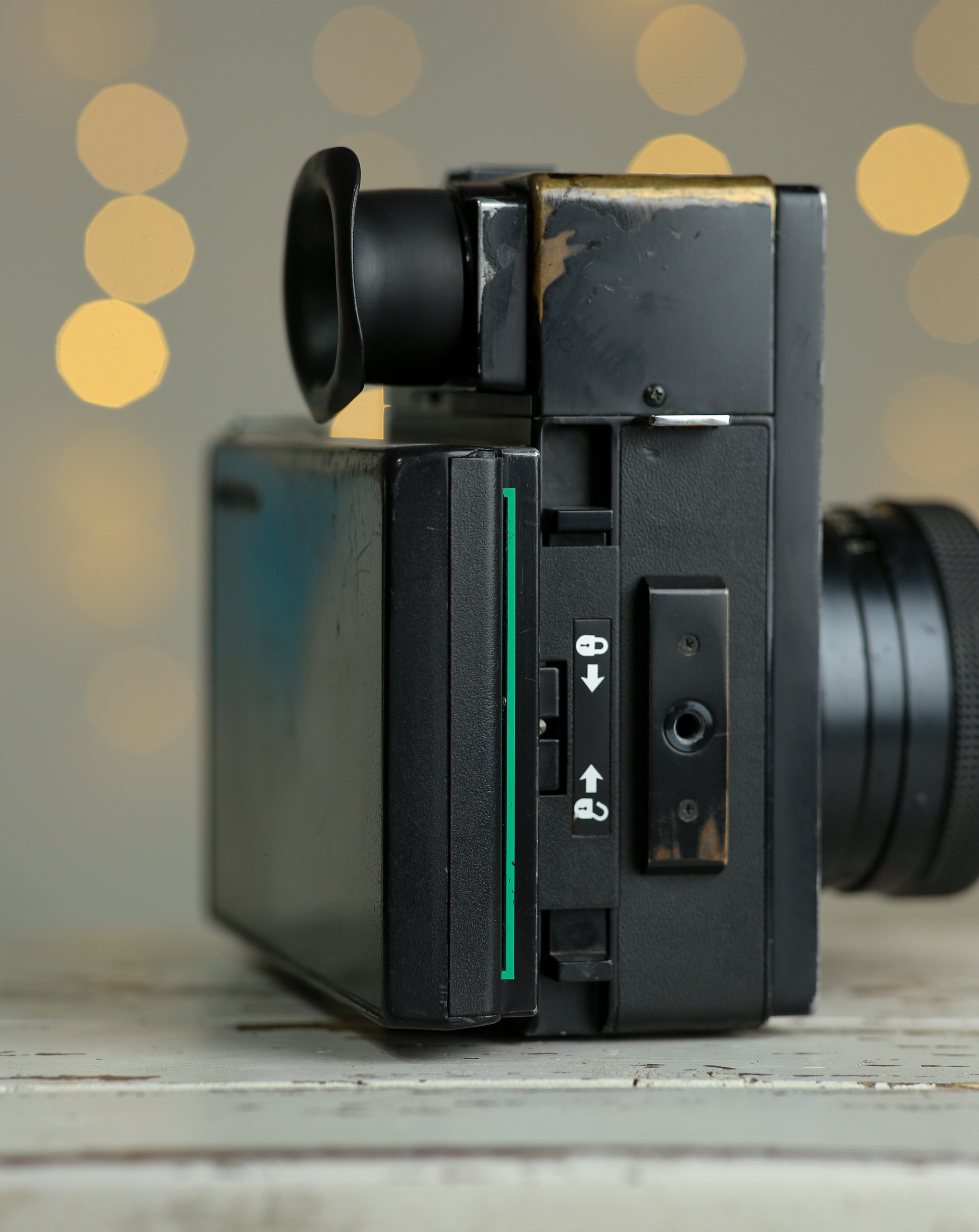 و لطفاً به عکسها دقت کنید رنگ رفتگی بدنه دوربین نسبت به قدمت و سال دوربین طبیعی است و چون بدنه برنجی میباشد رنگ رفتگی زیبایی چشمگیری دارد