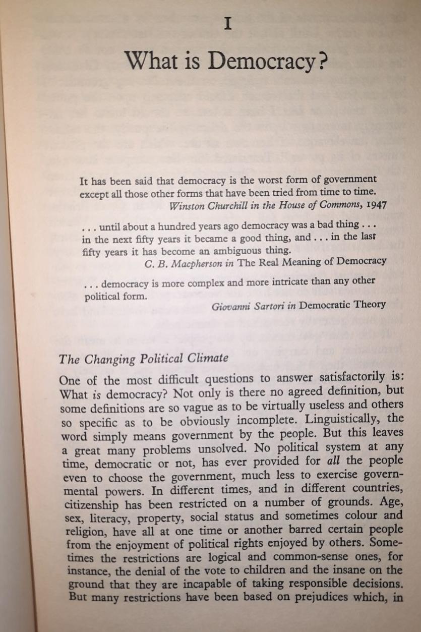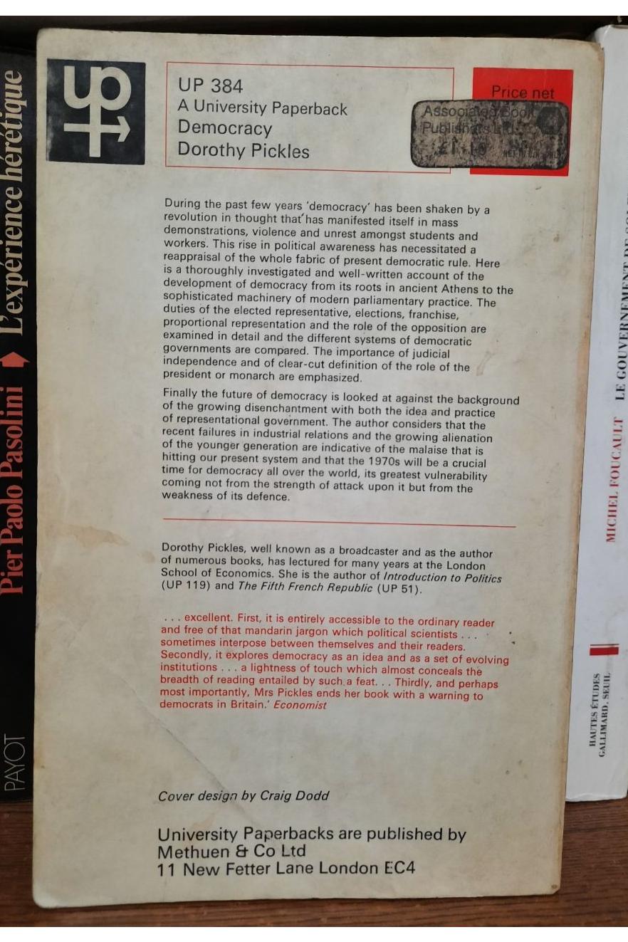 Democracy | Dorothy Pickles | 200 Pages | Methuen, 1971.