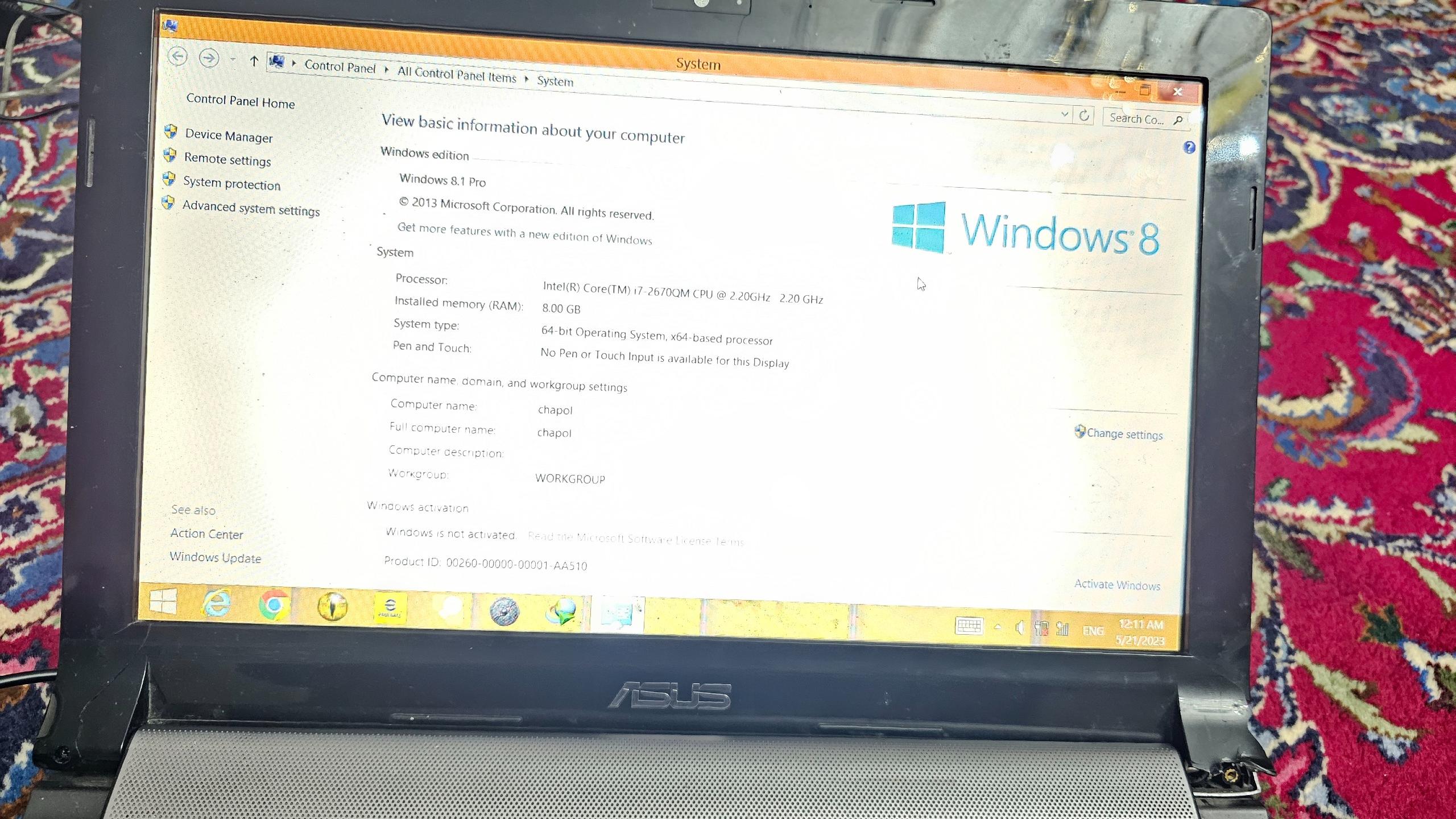لپ تاپ ایسوس به مشخصات زیر