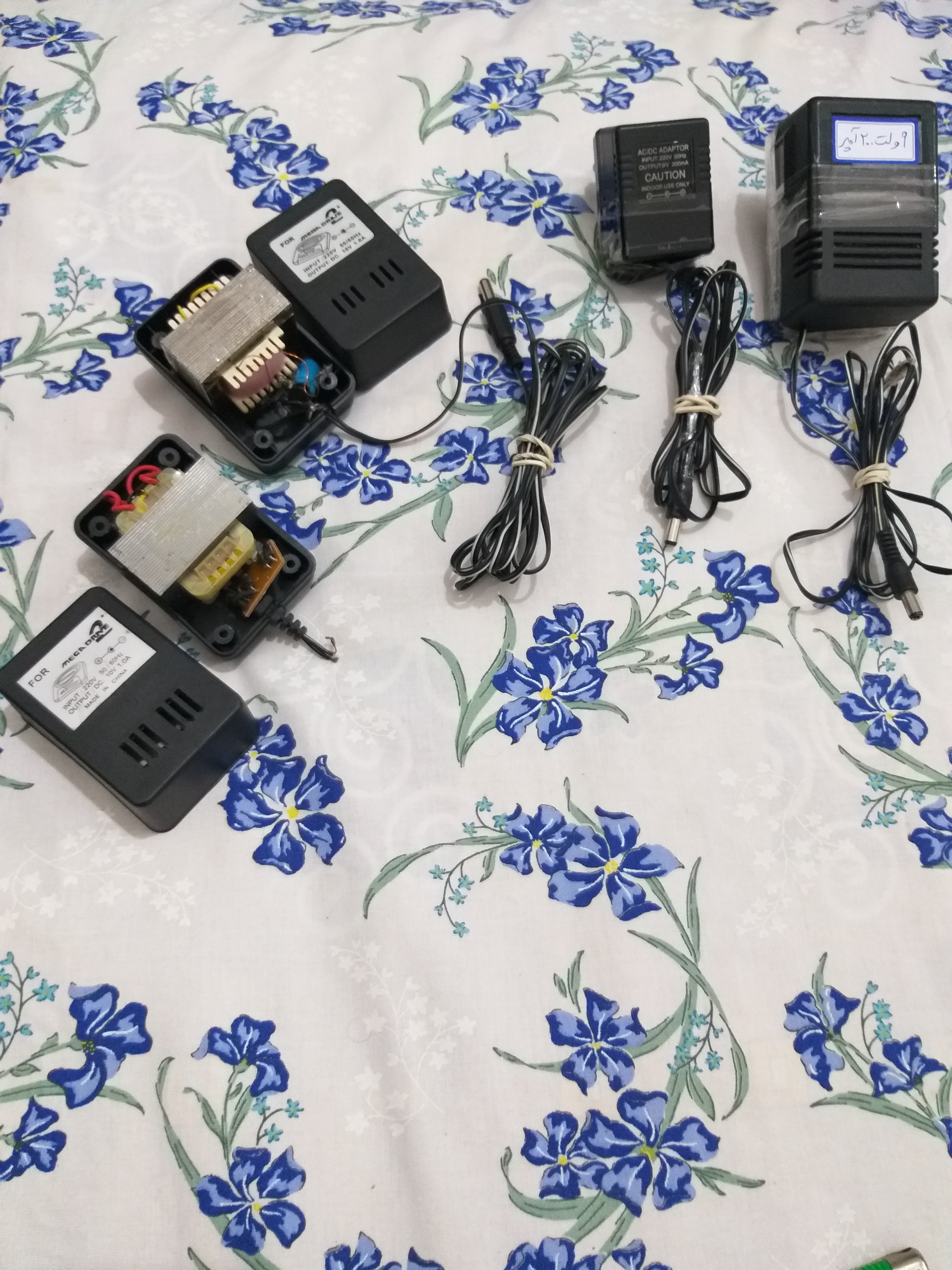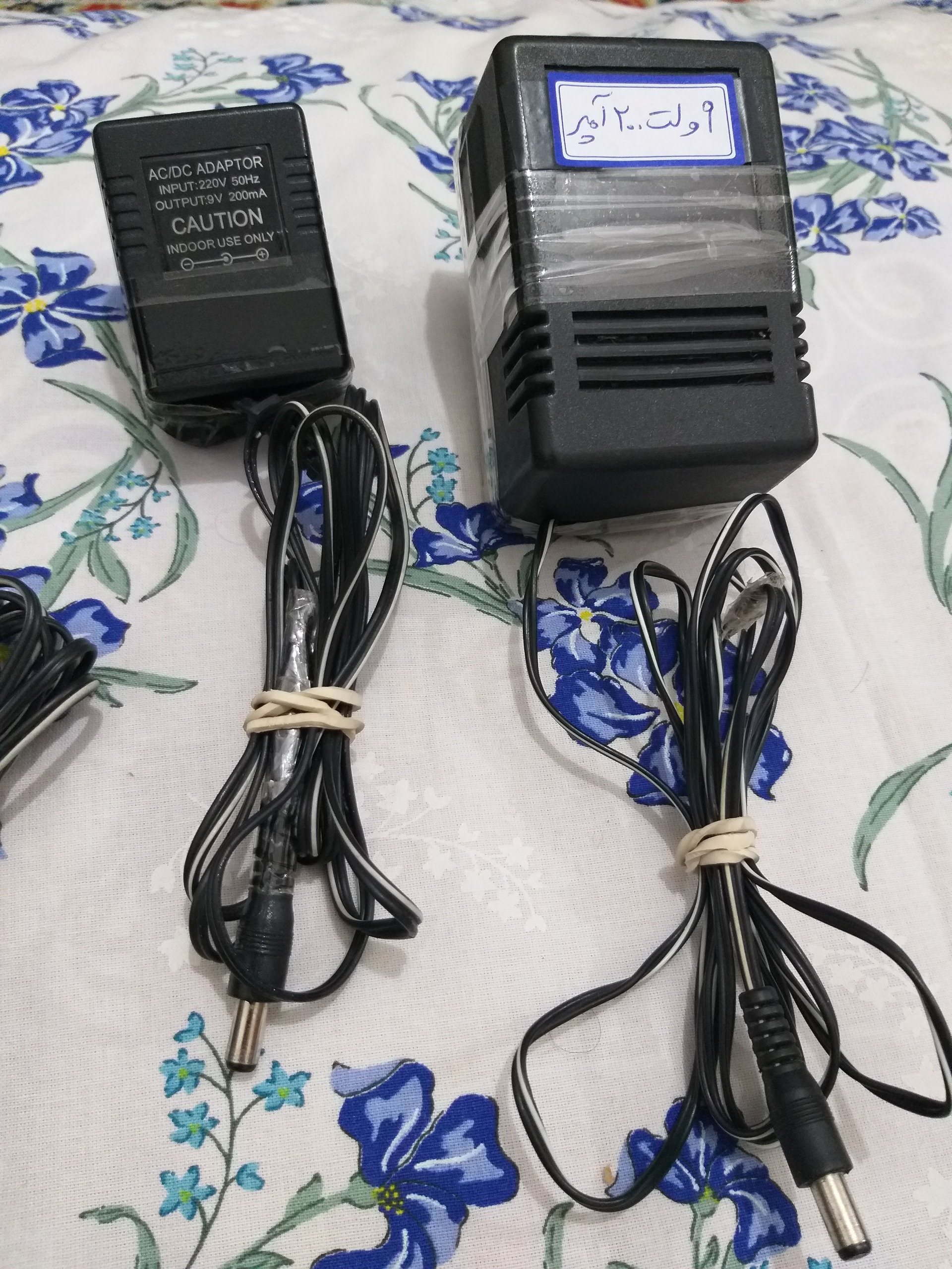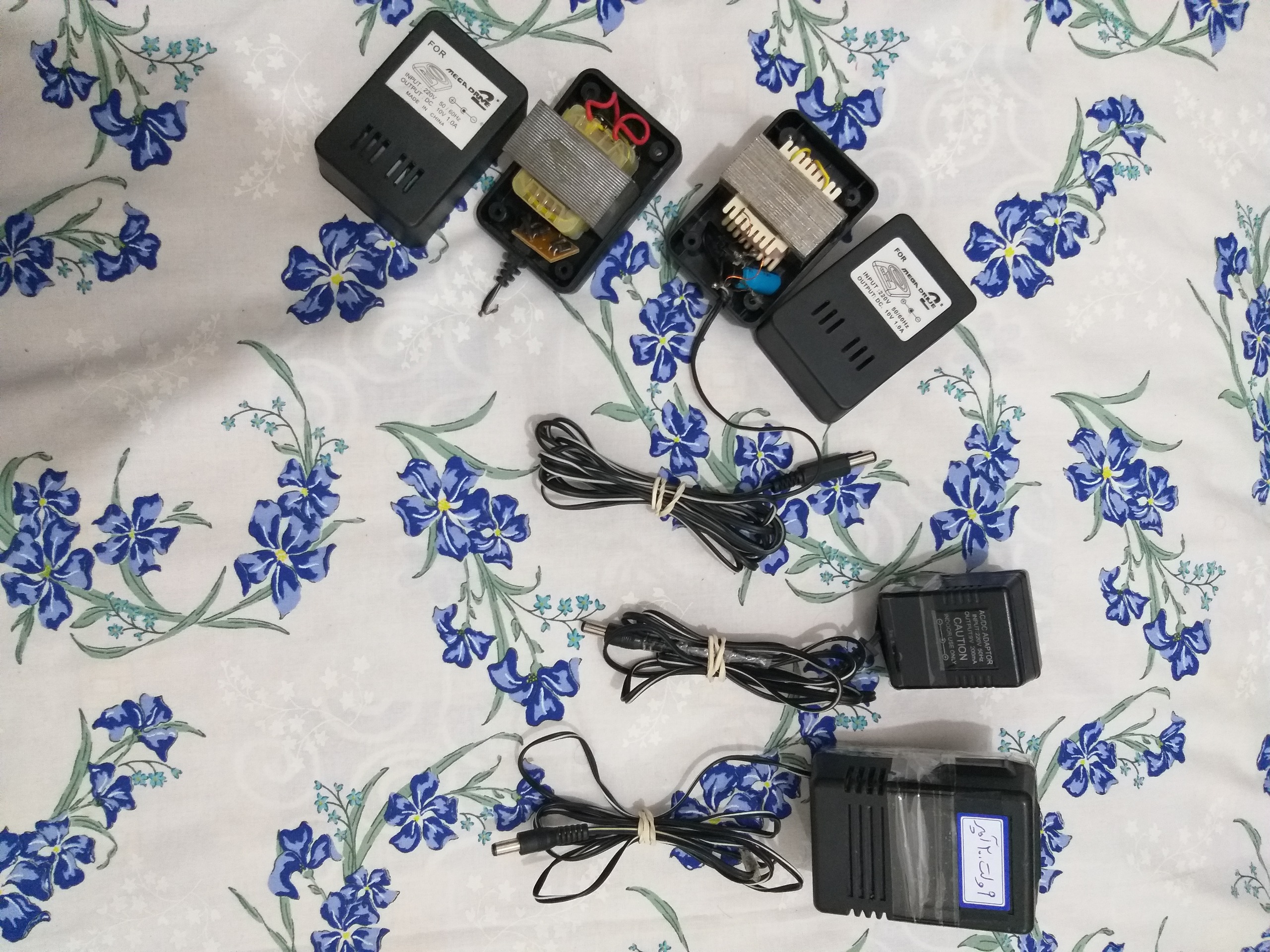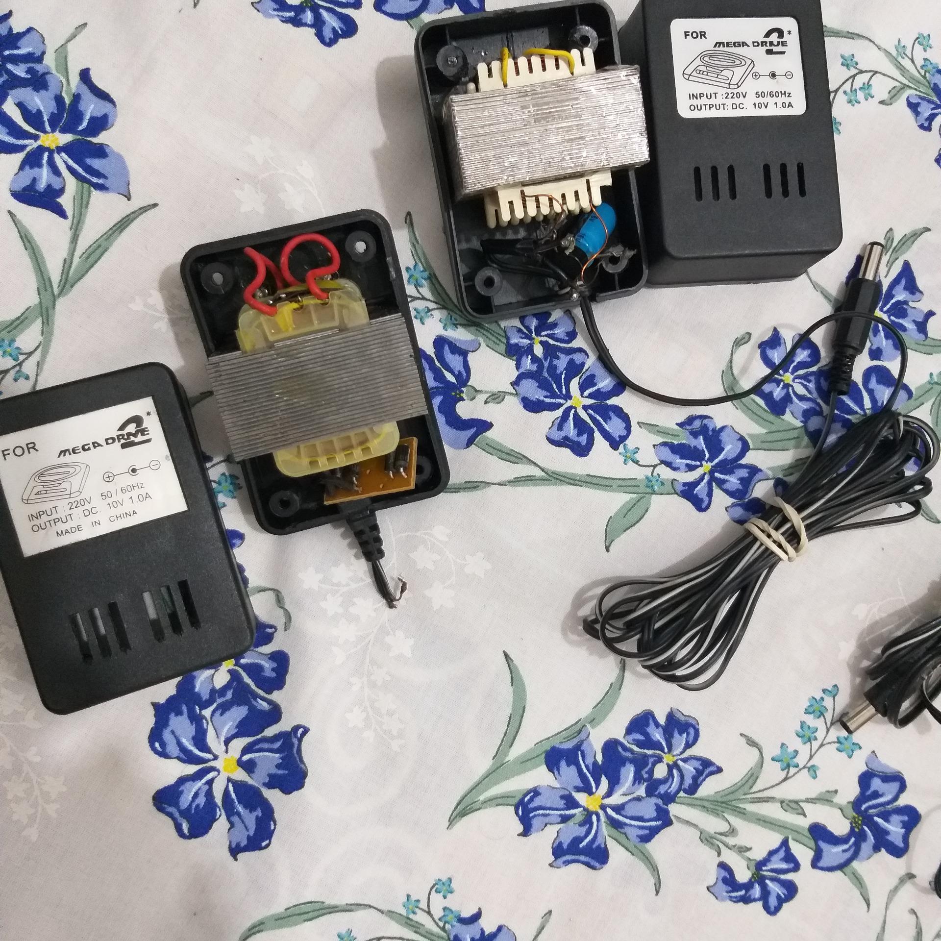 4 عدد آداپتور ، 2 عدد برای سگا قدیمی (هسته سنگین سیم مسی) یکی سالم و اون یکی نیاز به تعمیر دارد (معیوب) اونی که سیمش کامل نیست معیوب است در عکس ها مشخص است، 2 عدد هم برای میکرو البته من برای سگاهای چینی (سوپر سگا) استفاده میکردم ولتاژ ترانس های سگا 10 ولت 1200 آمپر و ولتاژ ترانس های میکرو 9 ولت 200 آمپر هستش البته من مولتی متر نداشتم که دقیق بگم...