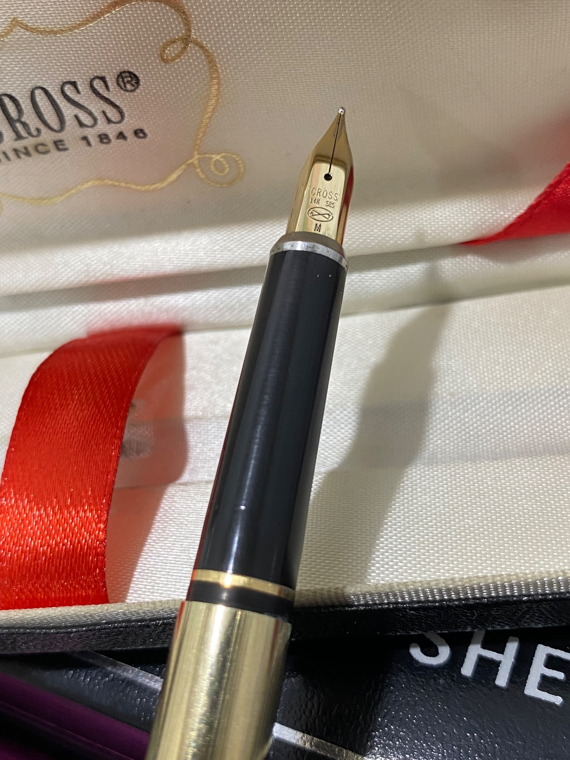 یا سلام خودنویس در حد نو با نوک طلا 14 عیار بدنه روکش بیست میکرونی طلا