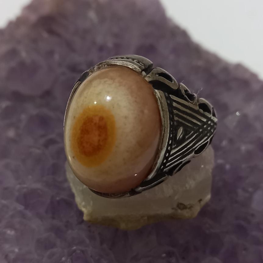 انگشتر عقیق باباقوری نارنجی خاص و بسیار زیبا با رکاب زیبای نقره
