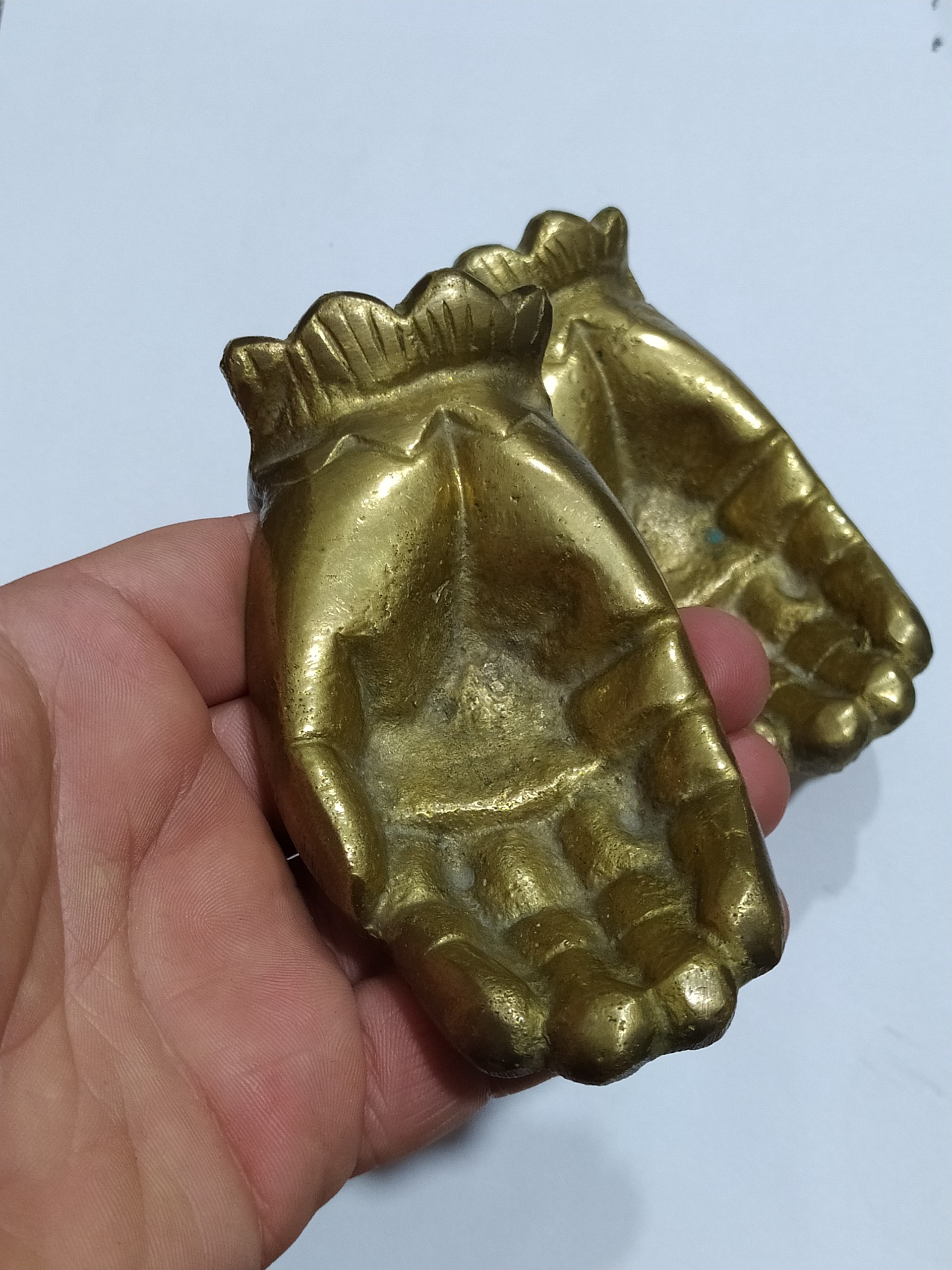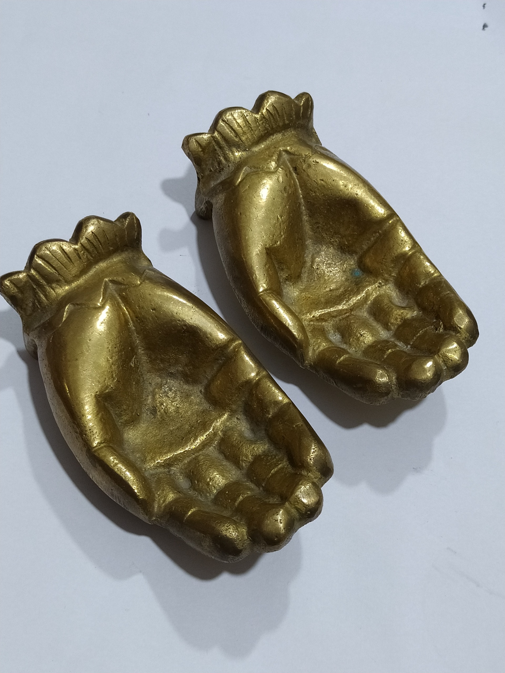 جفت زیرسیگاری قدیمی برنجی مدل دست اروپایی