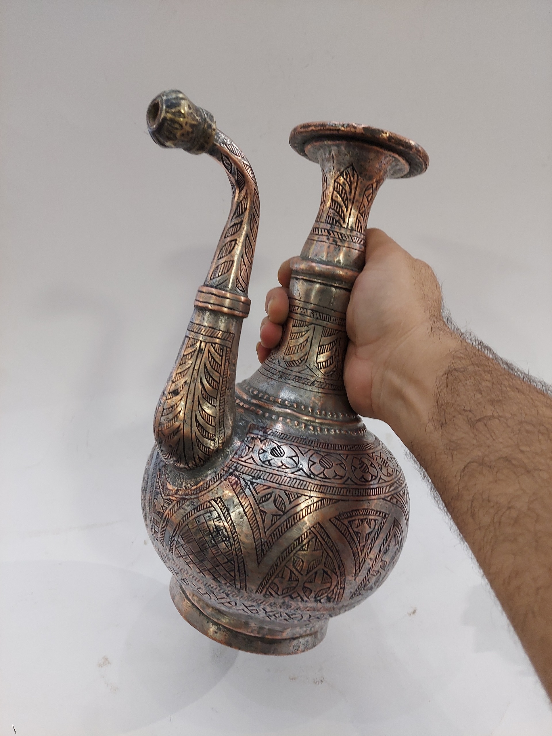 ابریغ یا آفتابه مسی قاجاری تمام قلمزنی بزرگ