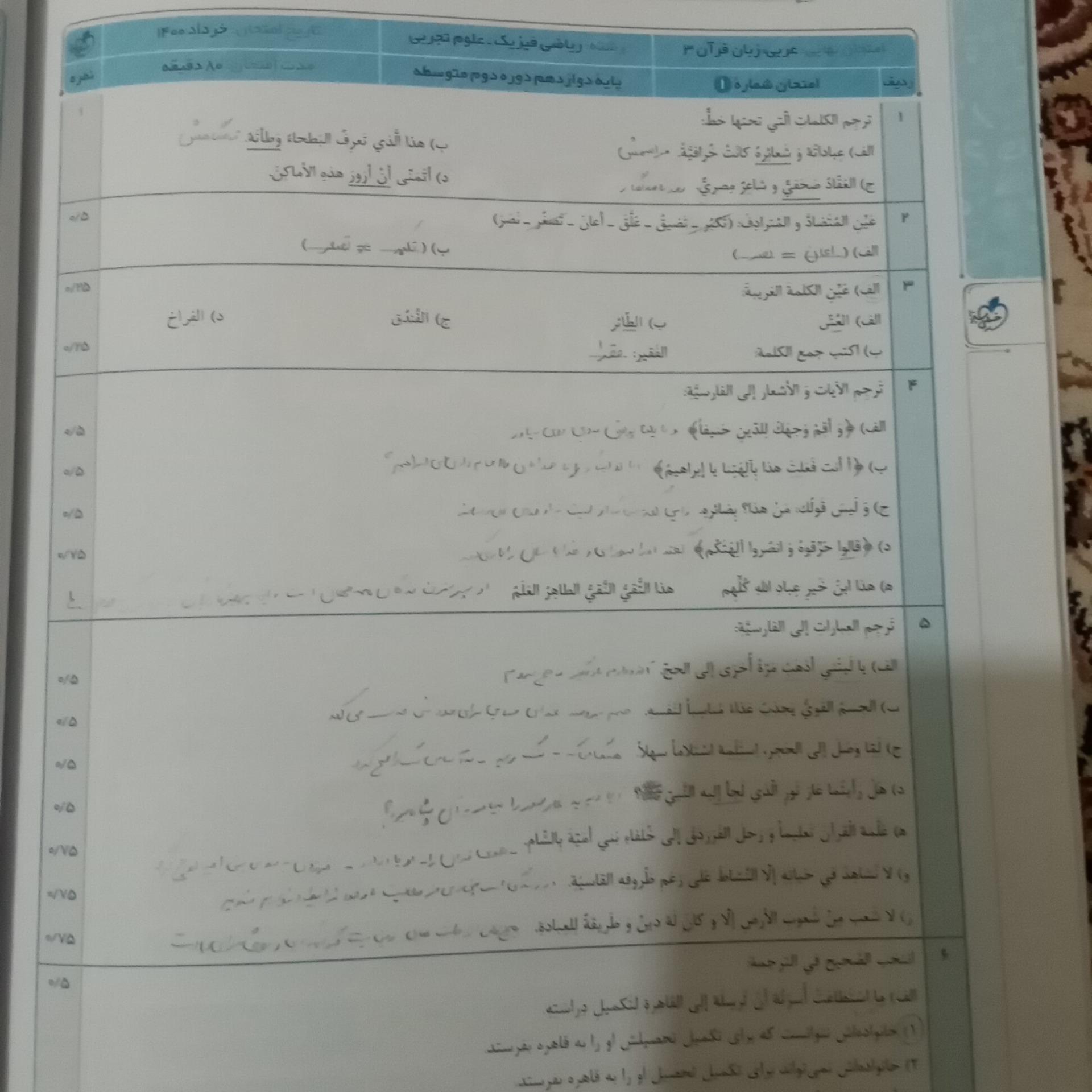 فقط 10 صفحه آخر با مداد خیلی ریز جواب نوشته شده