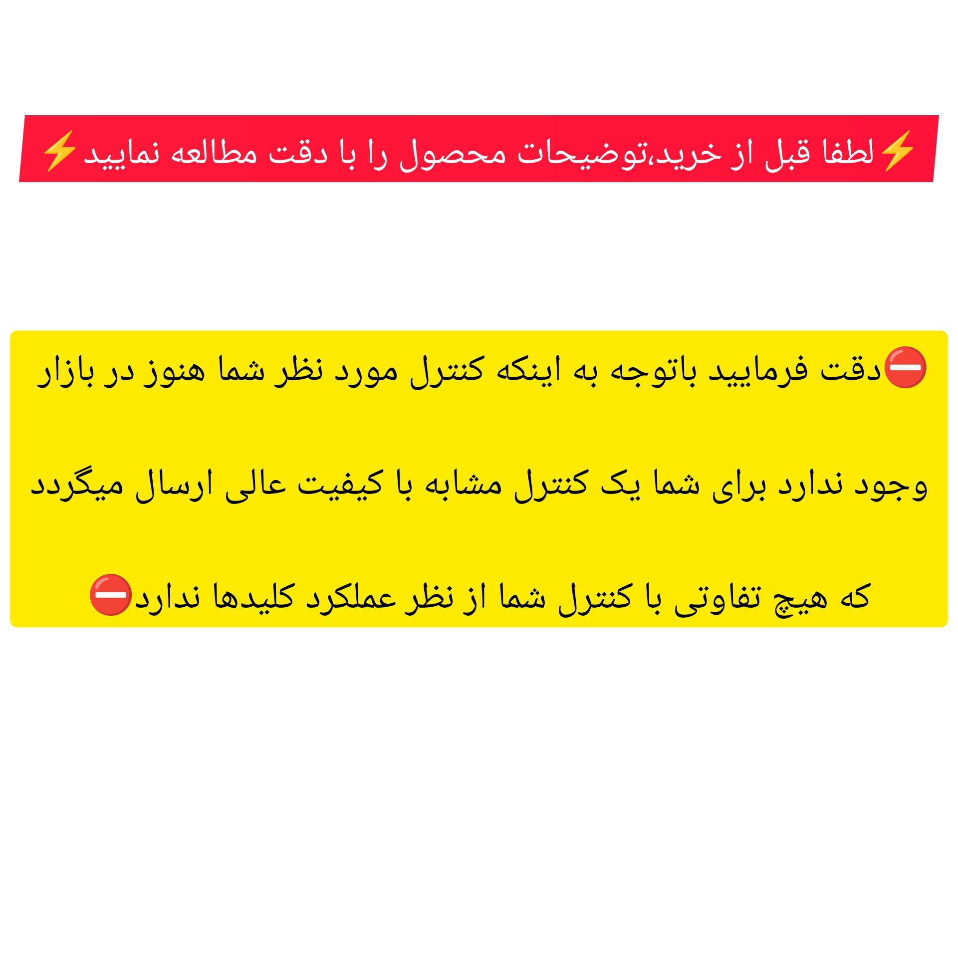 دقت فرمایید باتوجه با اینکه این کنترل هنوز به بازار عرضه نشده است برای کنترل شما یک کنترل جایگزین با عملکرد یکسان ارسال میگردد که هیچ تفاوتی با کنترل شما از لحاظ عملکرد کلیدها ندارد و فقط از لحاظ ظاهر باهم متفاوت هستن