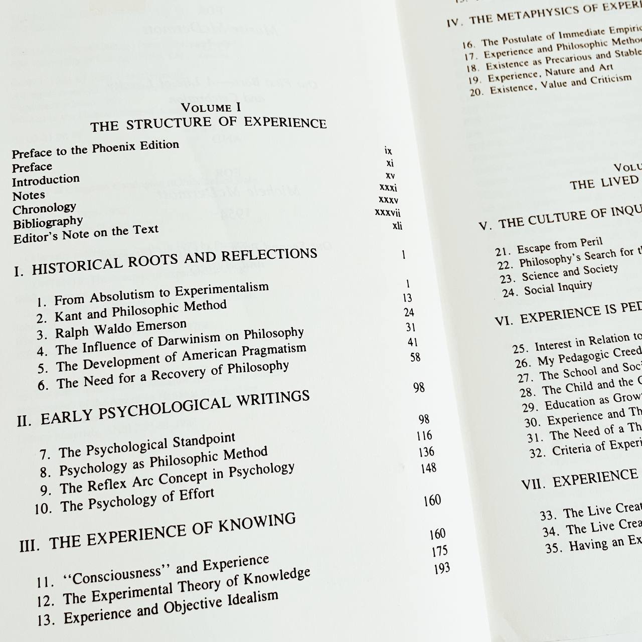 The Philosophy of John Dewey V 1: The Structure of Experience. V2: The Lived Experience