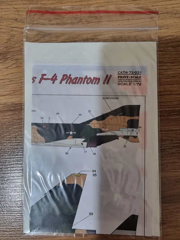 دیکال استنسیل اف 4 فانتوم از برند Print scale اوکراین به همراه دفترچه راهنمای نصب روی کیت . نوشته های دیکال بسیار با کیفیت