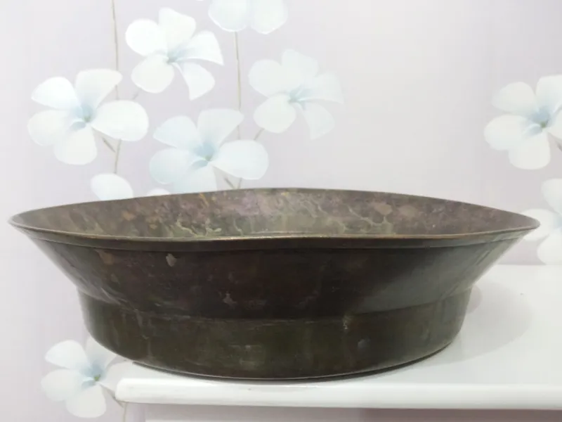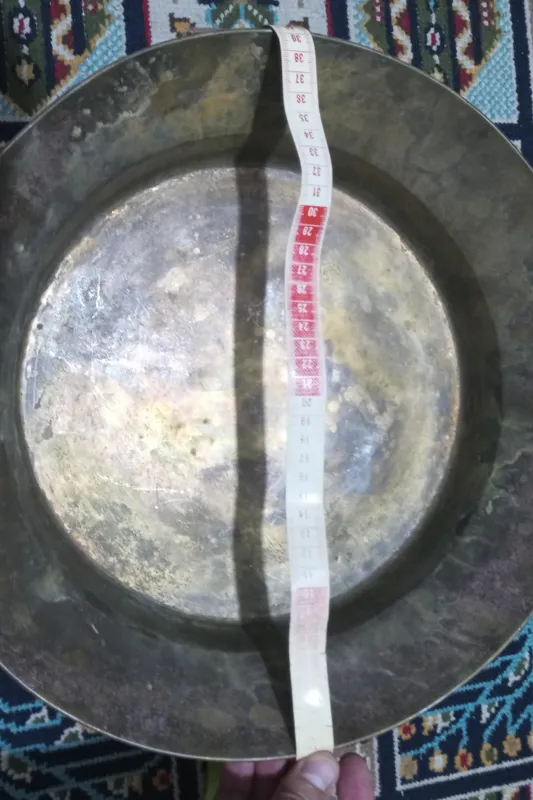 تشت برنجی روسی با قدمت بالای 80 سال به قطر 39 سانت مهردار .