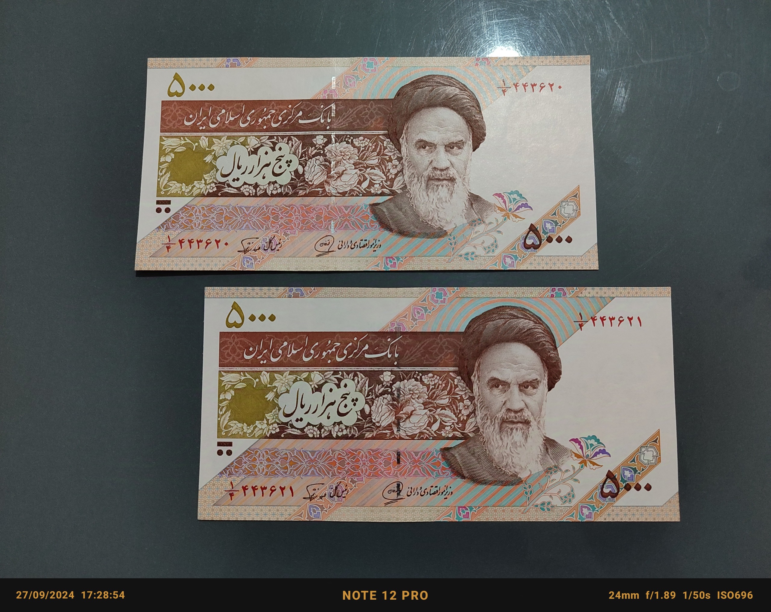 اسکناسهای جفت 5000 ریالی امضا با ارزش محمدخان نوربخش کسر کمیاب و خاص 1/4