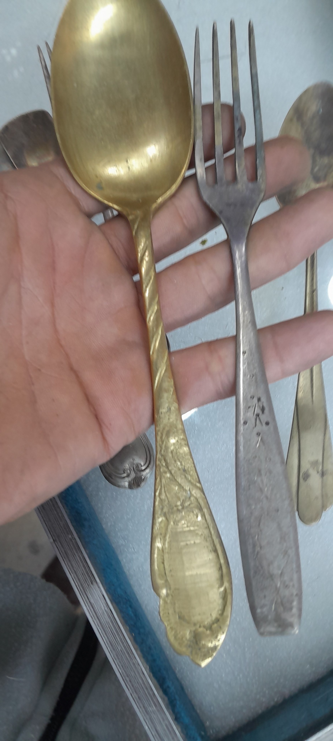 سلام 7عدد قاشق بزرگ .چنگال .کارد همگی بشرط قدیمی باهم 700ت فروخته میشه اگه از مغازه دار بخواهید بخرید دونه 350 کمتر نمیدن یک سوم قیمت فروخته میشه باتشکر
