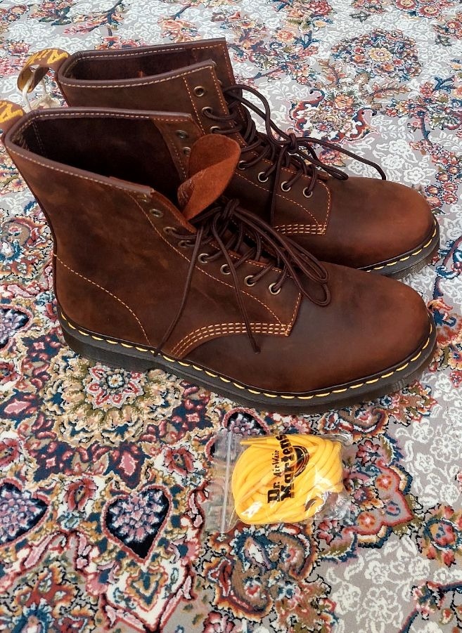 بوت چرم کریزی هورس.چرم بسیار قدرتمند و لطیف برای یک عمره نیاز به تعریف نداره طبی و راحتی و استایل شدن با همه چیز.در حد نو کادو استفاده نشده.سایز 44 ساخت آمریکا تحت لیسانس تایلند چون سایز بزرگه تا 45 هم میخوره راحت