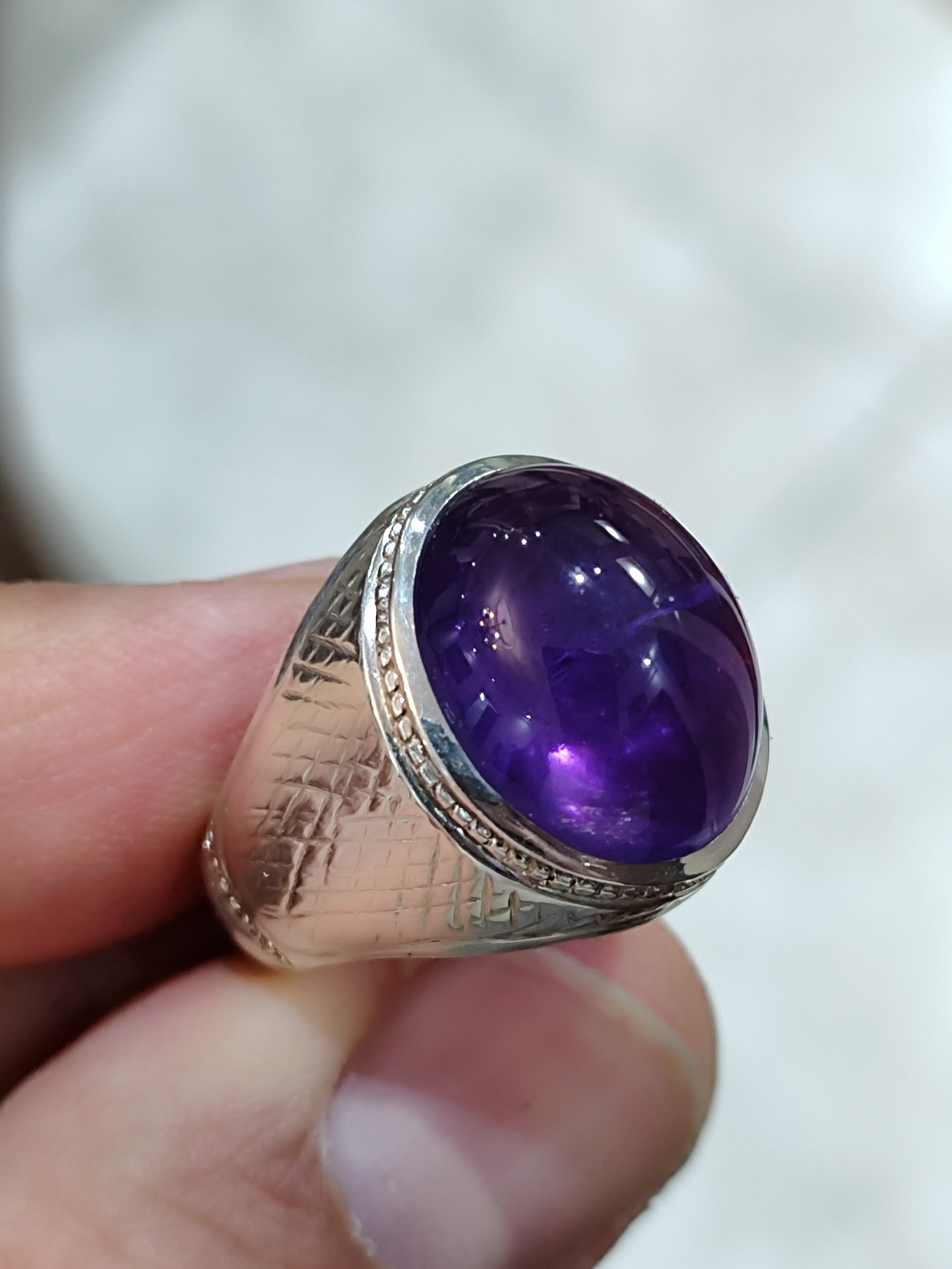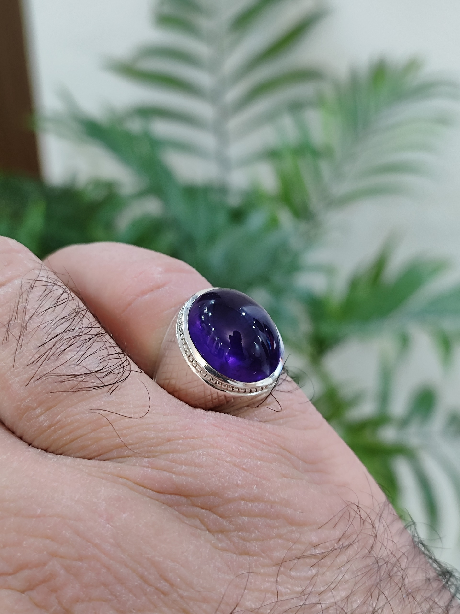 انگشتر اماتیس اروگوئه خوش رنگ وزن سنگ حدود 20 قیراط رکاب نقره سایز 58