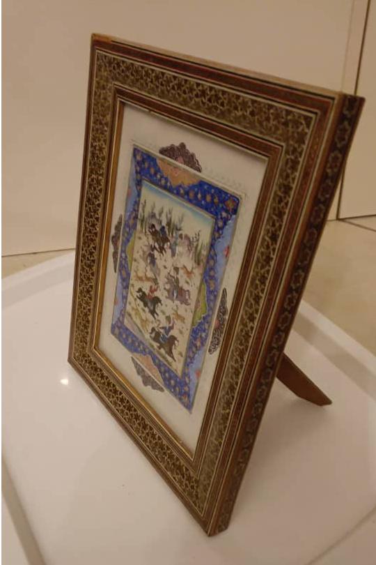 تابلو رو میزی شاهنامه خاتم کاری. ابعاد 25 در 30 سانت.
