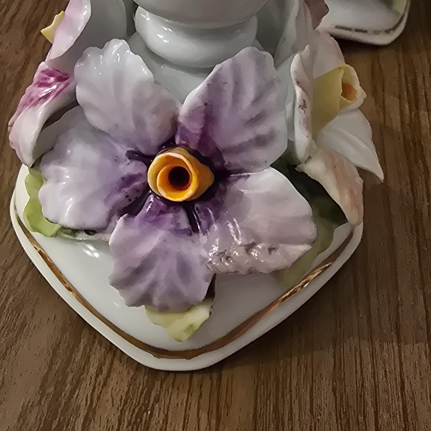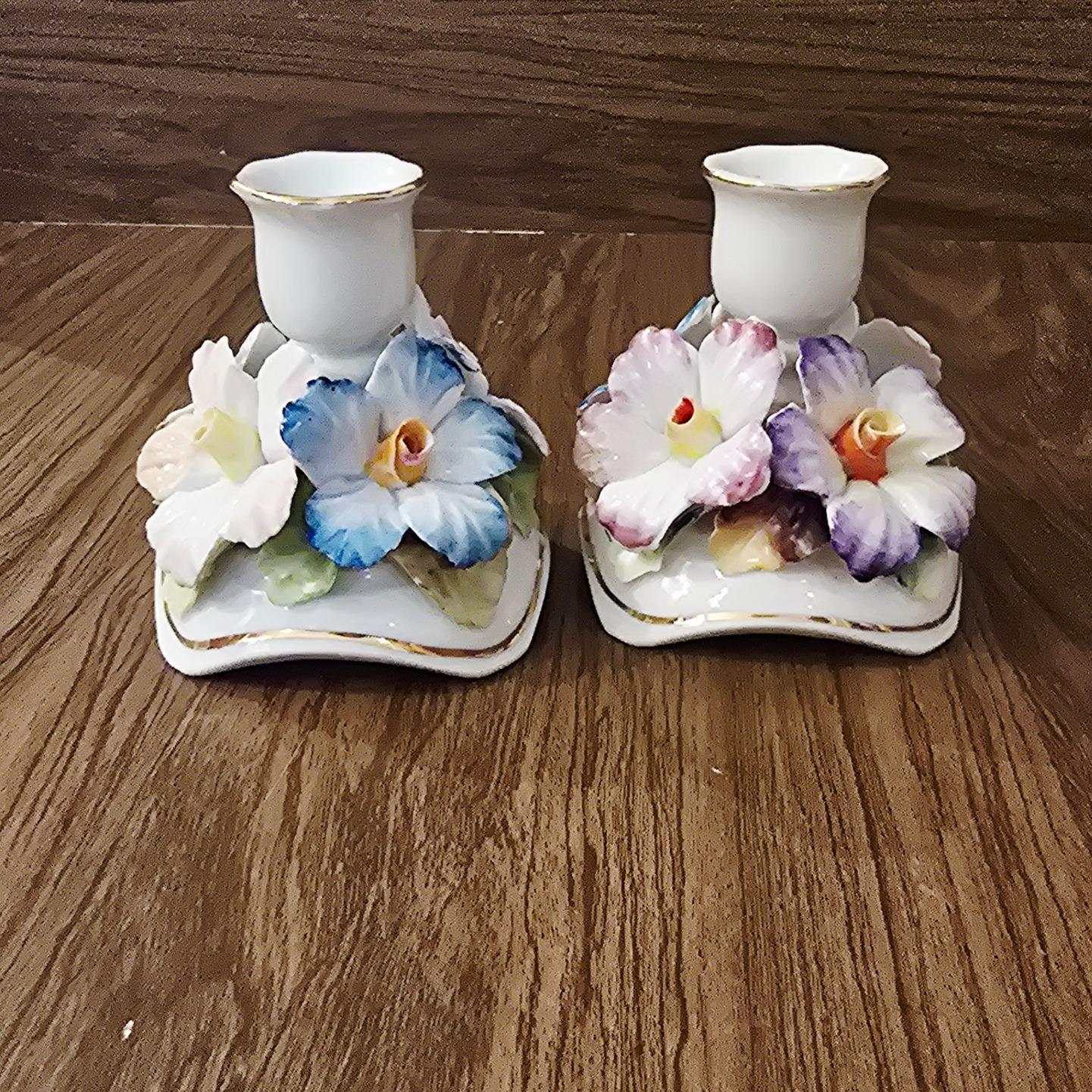 جفت جا شمعی گل برجسته ایتالیایی محصول 1922 . آنتیک و کلکسیونی به ارتفاع 9 سانت