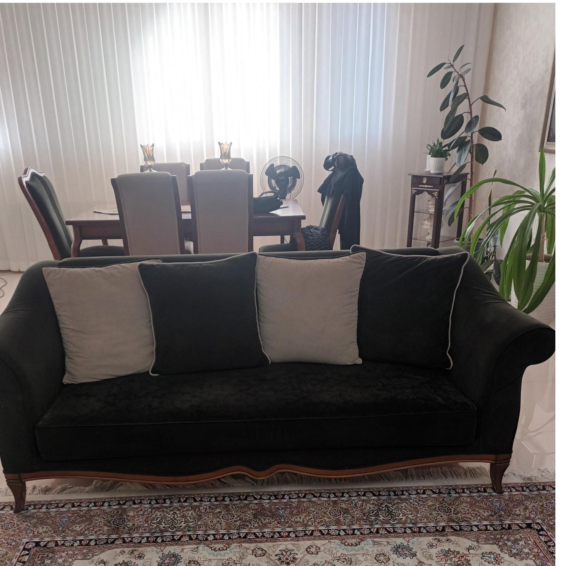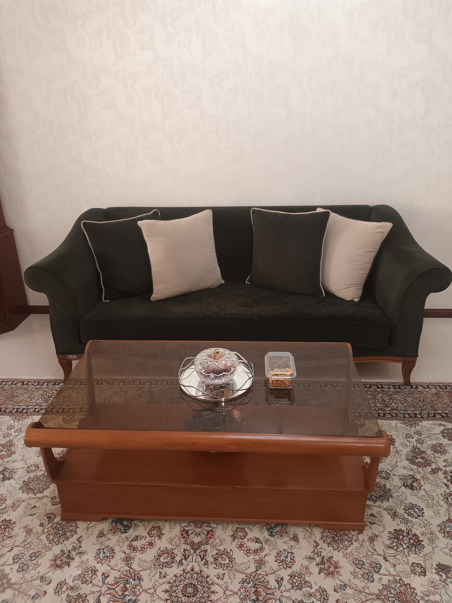 مبلمان هشت نفره برند Red Rose که دارای دو عدد کاناپه سه نفره عرض 70 ،دوتا تک نفره پشت بلند یک میز جلو مبلی و یک میز عسلی میباشد. چوب کلافها همه راش که فندقی رنگه وپارچه هم مخمل درجه یک یشمی خوشرنگ و کرم میباشد.از بابت عیوب کار باید بگم ابرها سالمن ونشستی نداره فقط پارچه مبلهای تک نفره دقیقا زیر مغزی دوزی کنار کار در حد دو سه سانت پارگی جزیی داره که چون دید نداره منم تعمیرش نکردم.بهر حال وظیفه داشتم جزئیات رو بگم.ضمنا میتونین استعلام این برند رو اینترنتی بگیرین تا متوجه متریال قوی اون بشین.باتشکر