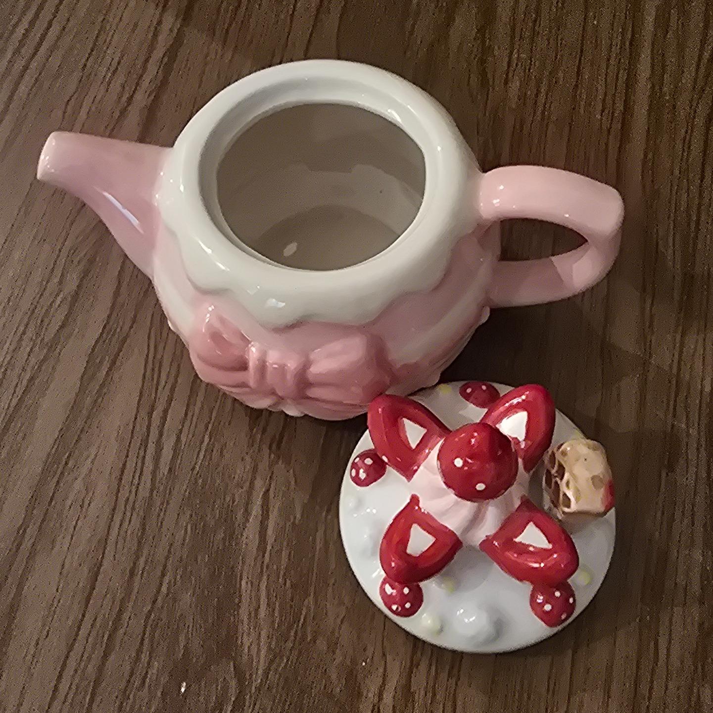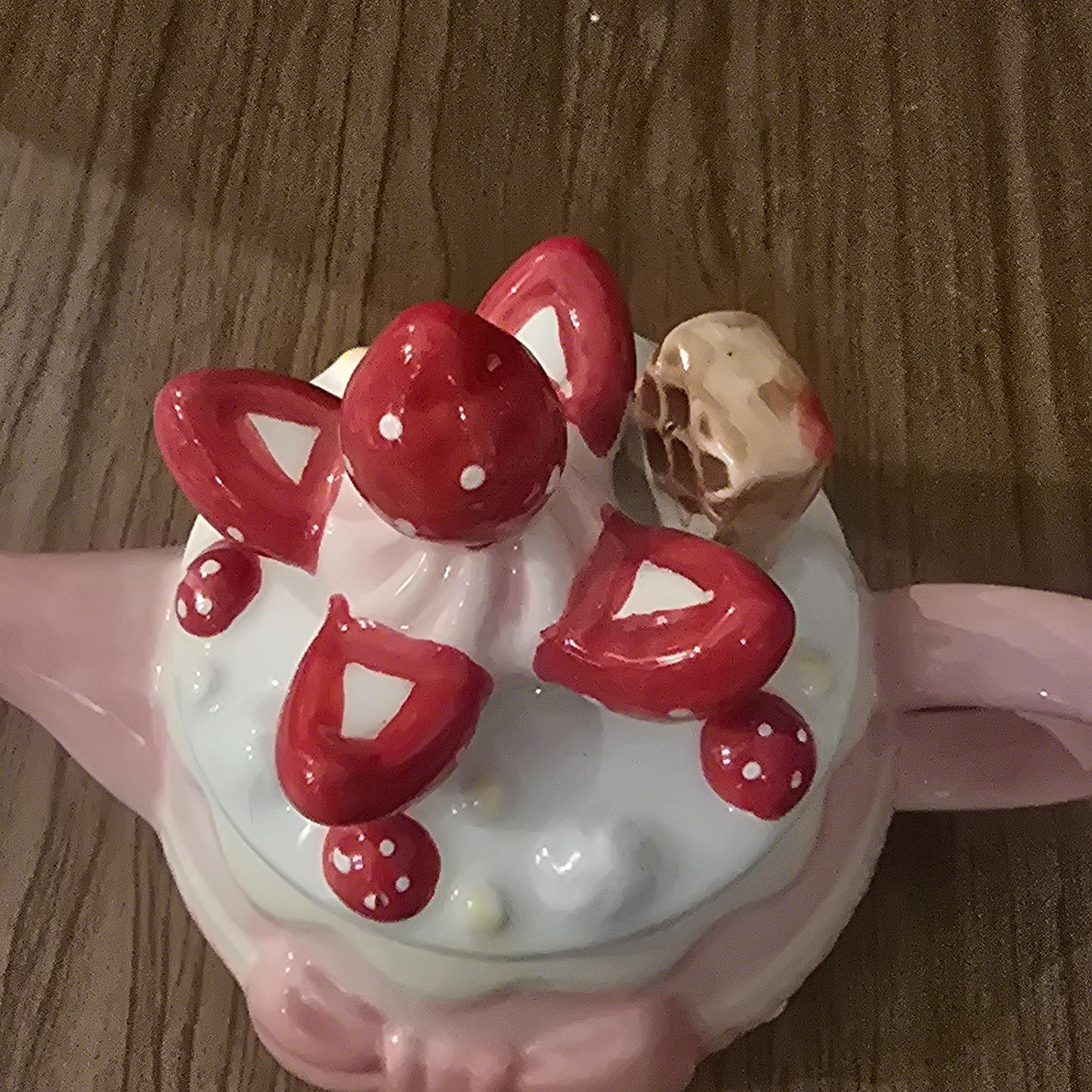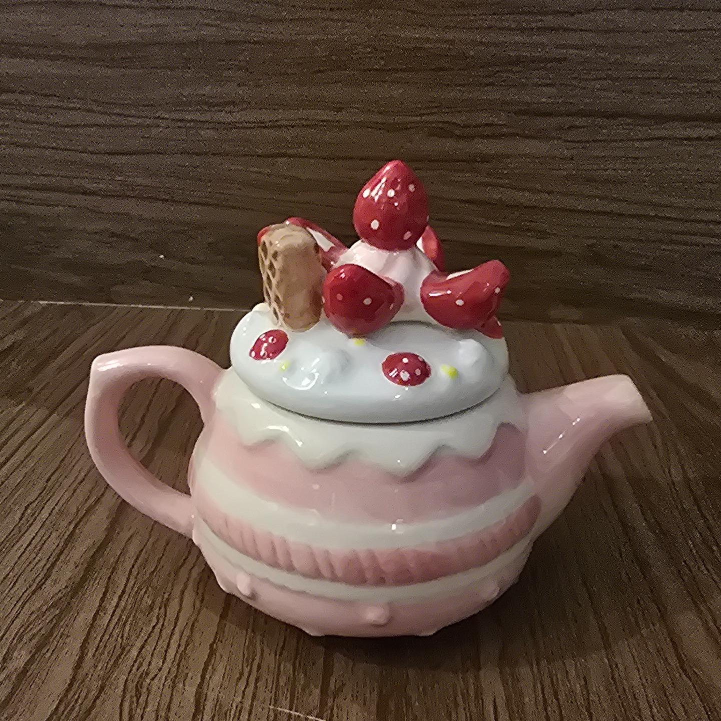 قوری فانتزی طرح کیک توت فرنگی صورتی. کار کلکسیونی به ارتفاع 13 سانت . قیمت برای هر عدد است