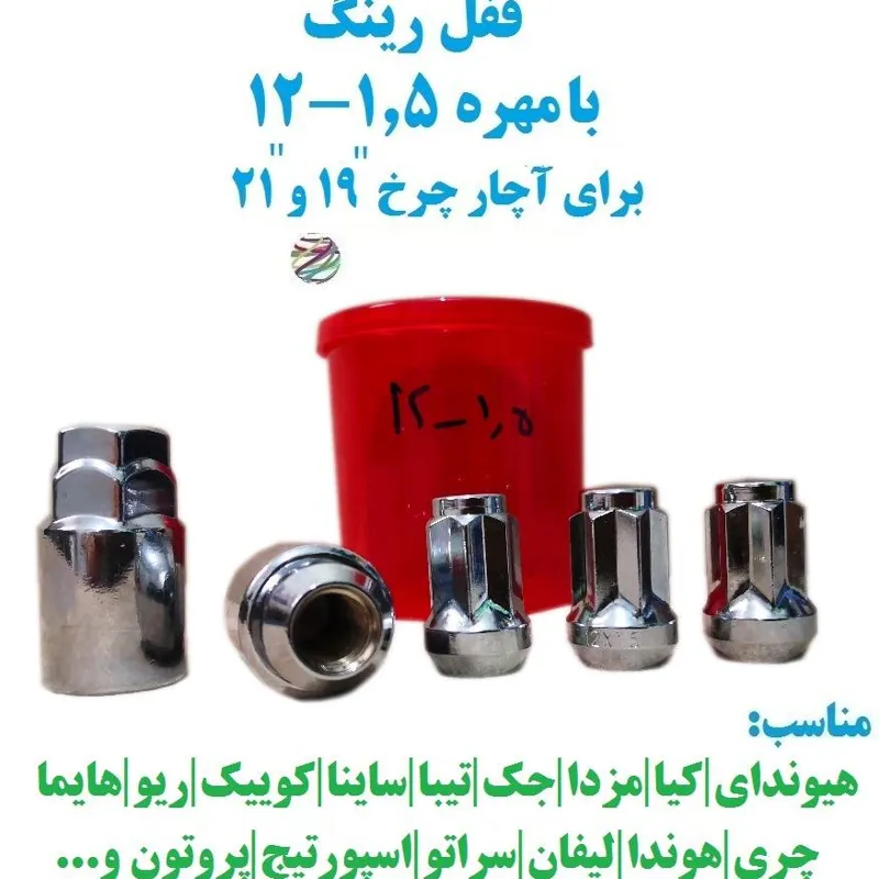 • سایر توضیحات: قفل رینگ بامهره 1.5-12 برای آچار چرخ 19 و 21 خارجی قابل نصب بر روی هیوندای کیا -مزدا جک تیبا ساینا -کوییک ریو -هایما چری هوندا لیفان سراتو اسپورتیج پروتون و اکثر رینگ خودروهایی که مهره 1.5-12 با سری آچار چرخ شماره 19 و 21 دارند. ساخته شده با بهترین طراحی محافظت از سرقت درجای رینگ و لاستیک خودرو امنیت بالا رنگ استاتیک ضد زنگ * این محصول دارای امنیت بسیار بالا و دارای قفل ضد سرقت می باشد. فیلم آموزش نصب هم بخواهید ارسال میشود. نصب در تهران هم داریم باهماهنگی. پخش عمده هم داریم هرگونه سوالی هم پیام بدهید.