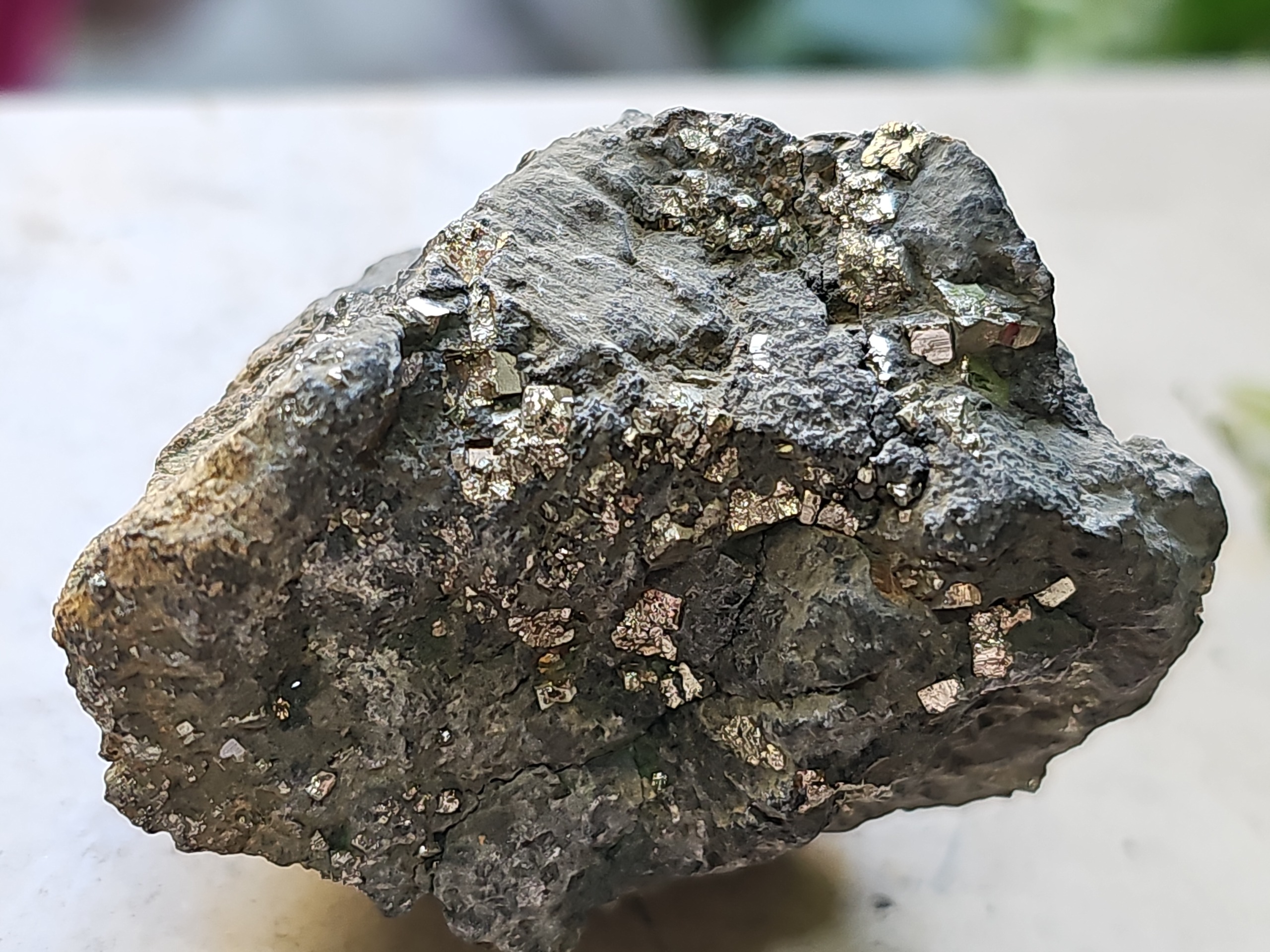 بلورهای وجه دار مکعبی پریت در بستر سنگ