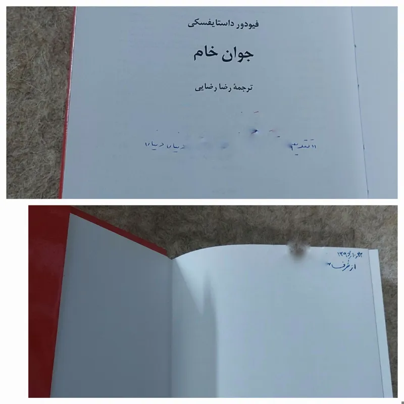 صفحه اول و صفحه آخر یک خط نوشته تقدیمی دارد(عکس آخر)