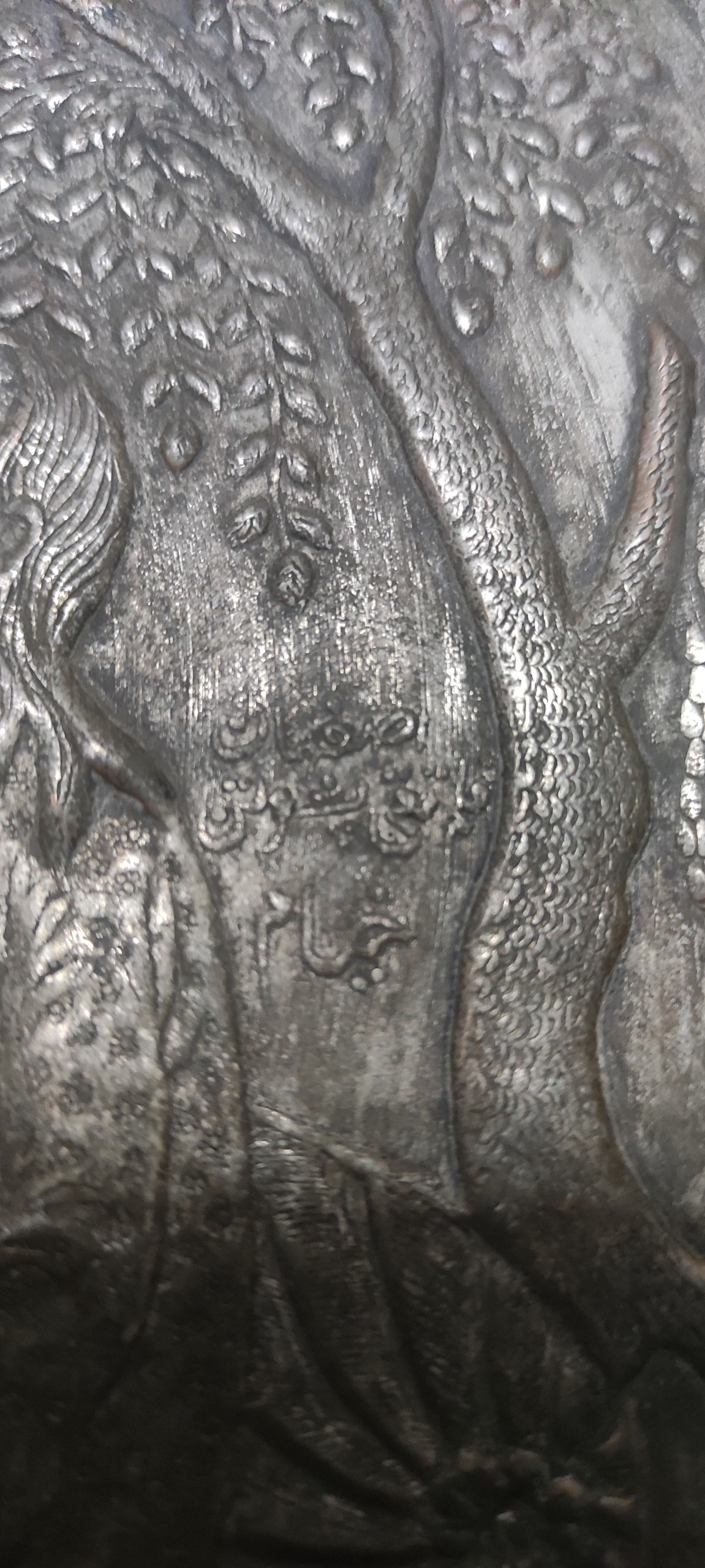 سینی مسی قدیمی قلمدار و امضا دار دیوارکوب