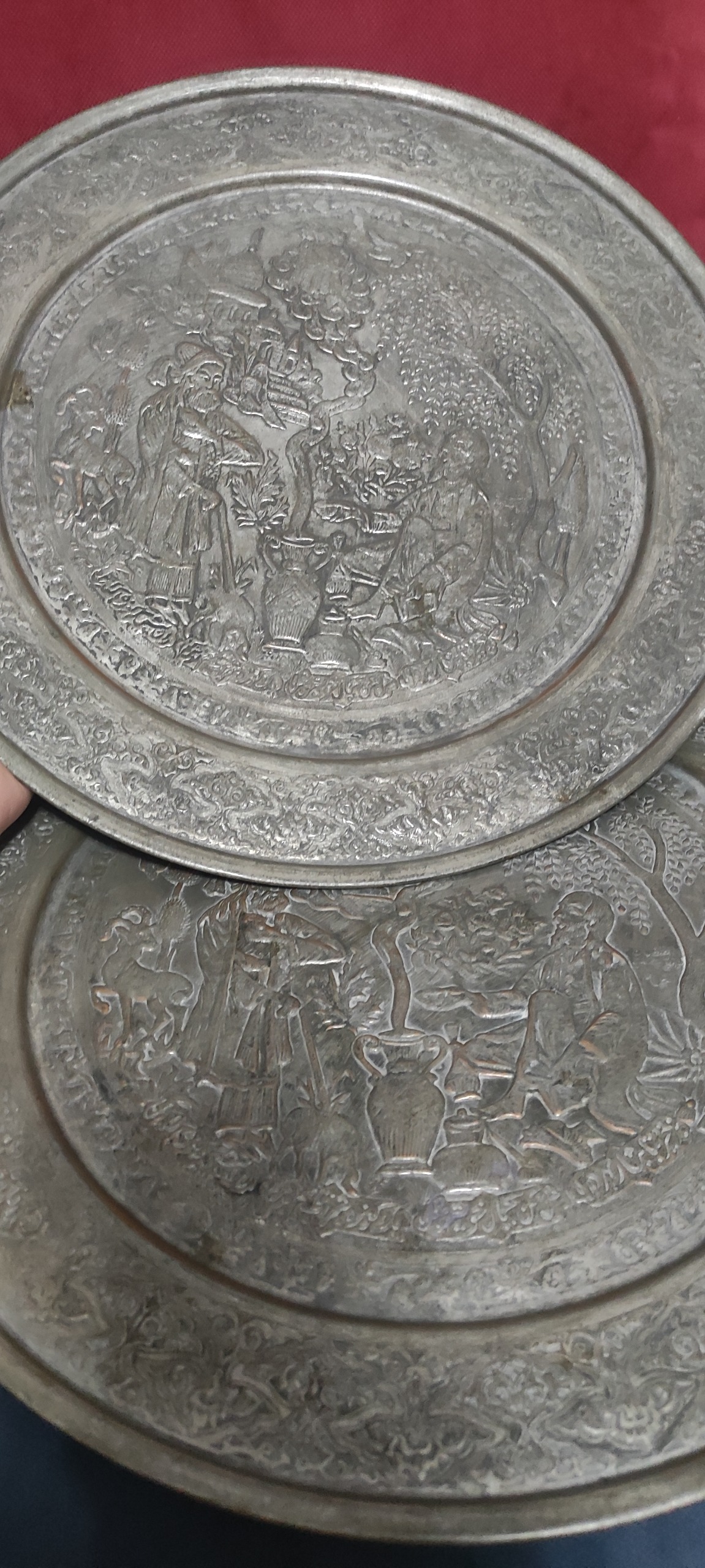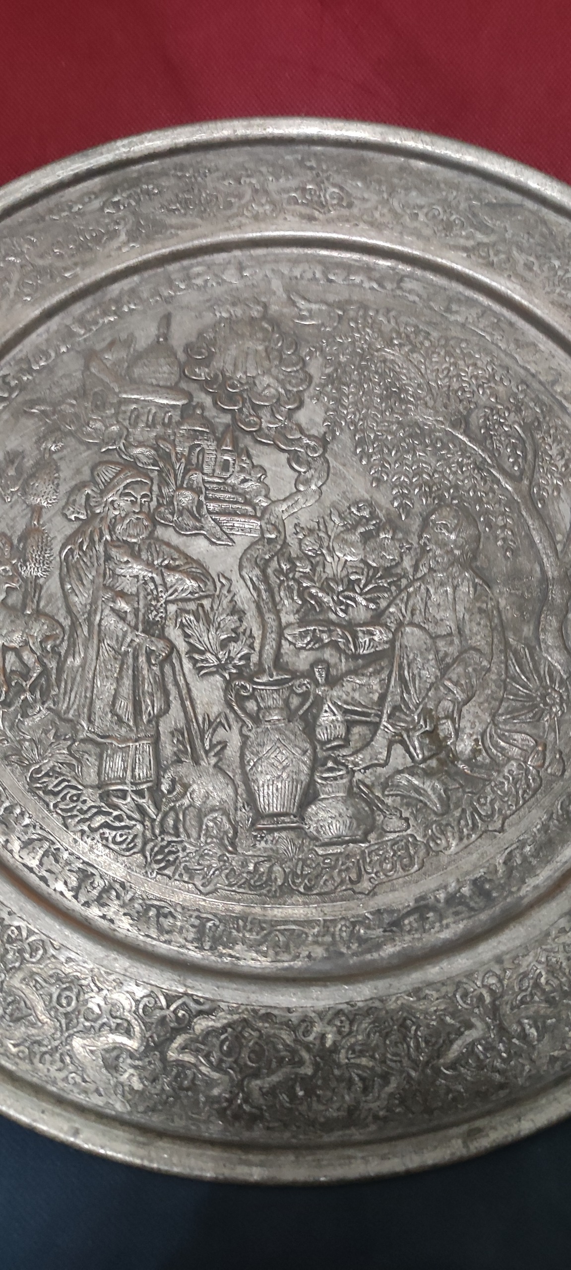 سینی مسی قدیمی بسیار زیبا قلم دار و تاریخ دار دیوار کوب