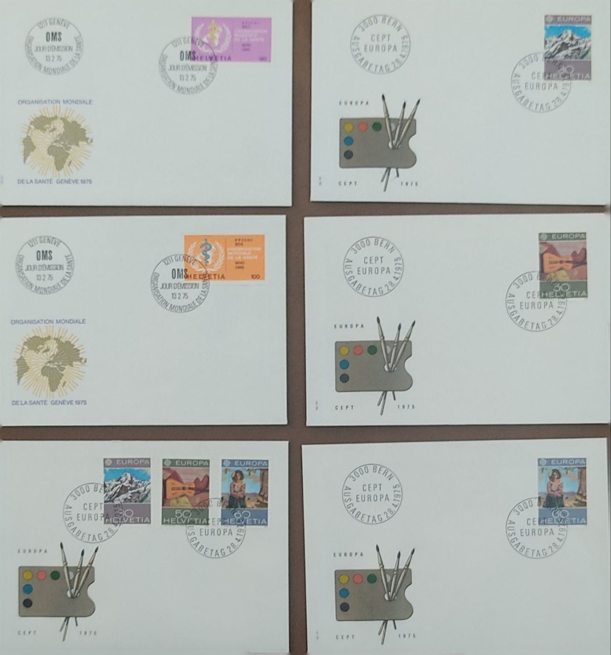 6 عدد پاکت مهر روز سوئیس 1975