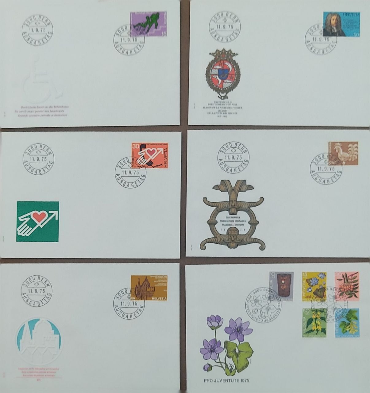6 عدد پاکت مهر روز سوئیس 1975