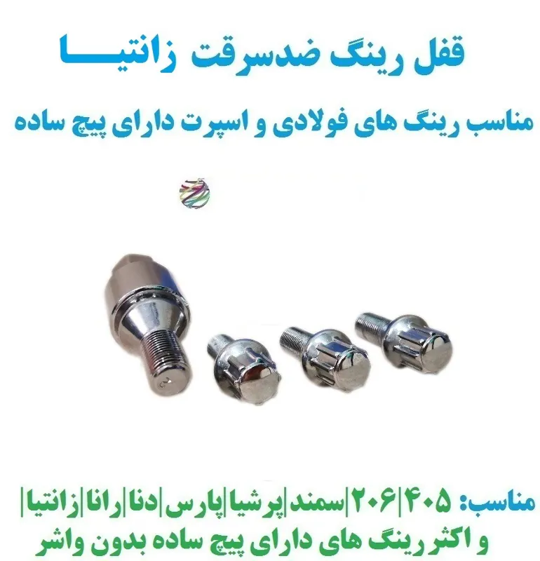- سایر توضیحات: قفل رینگ ضدسرقت زانتیا مناسب برای رینگ های فولادی و اسپرت با پیچ ساده قابل نصب بر روی 405 206 سمند پرشیا پارس دنا رانا زانتیا و اکثر رینگ خودروهایی که پیچ 1.25-12 با سری آچار چرخ شماره 17 و 19 دارند. ساخته شده با بهترین طراحی محافظت از سرقت درجای رینگ و لاستیک خودرو امنیت بالا رنگ استاتیک ضد زنگ * این محصول دارای امنیت بسیار بالا و دارای قفل ضد سرقت می باشد.