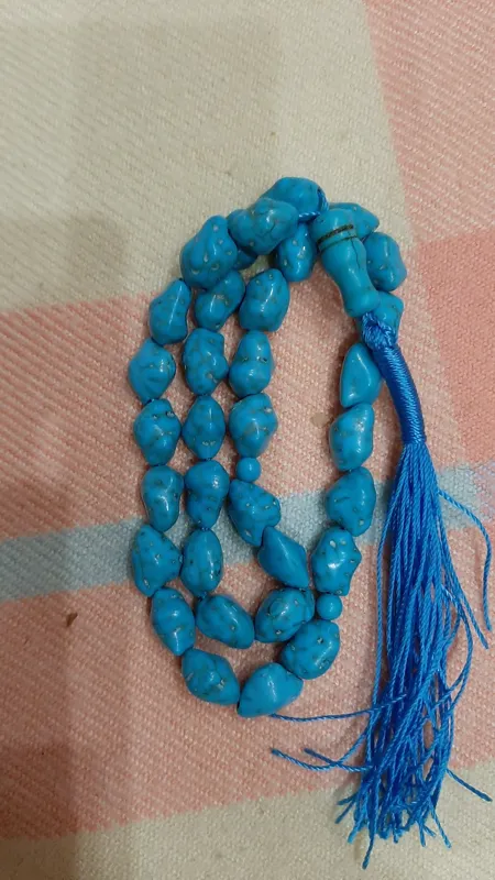 تسبیح سنگ معدنی فیروزه ای تبتی هست اصل اصل و 33 دانه ای