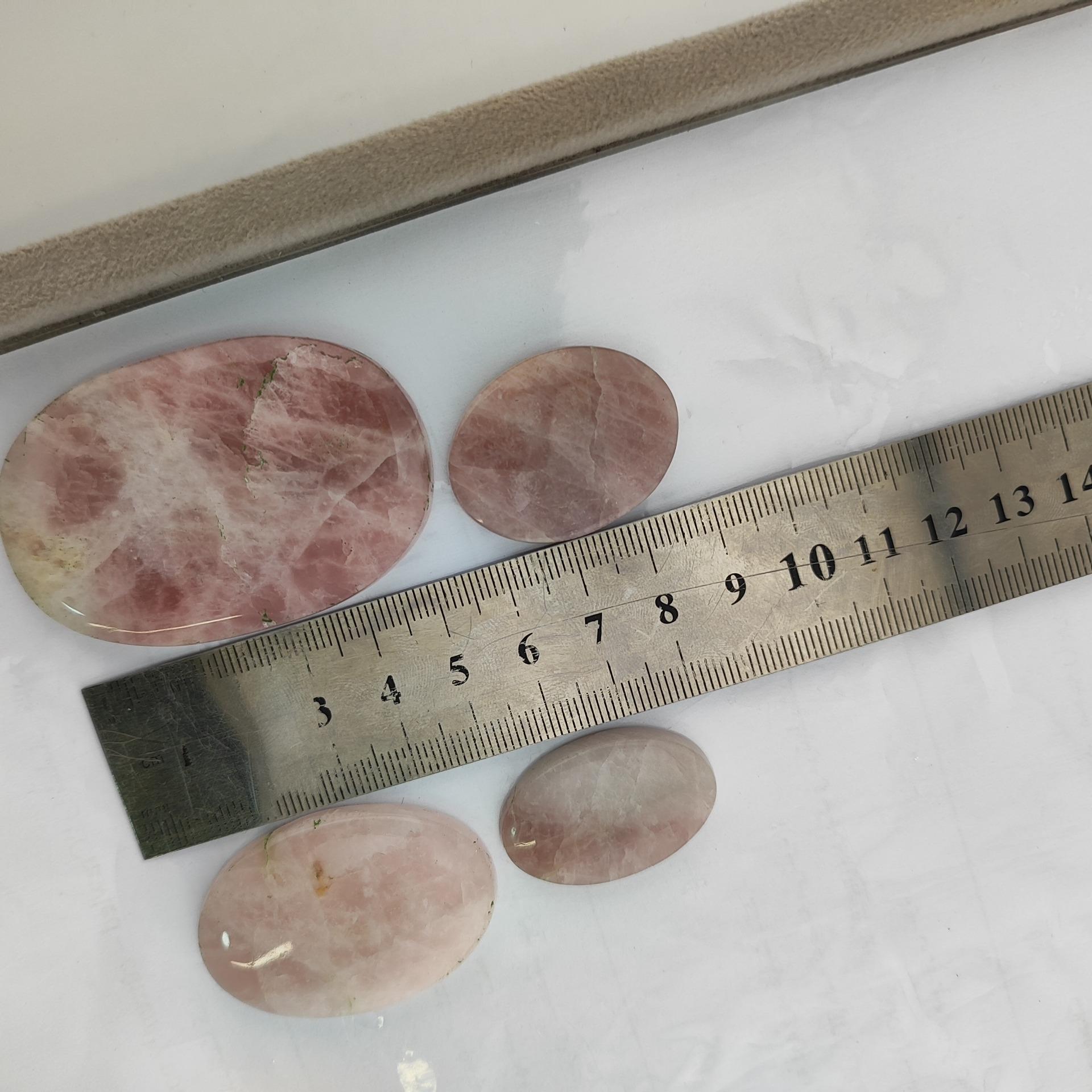 چهار عدد رز کوآرتز تراش بیضی خوش رنگ و مناسب برای همه نوع جواهر
