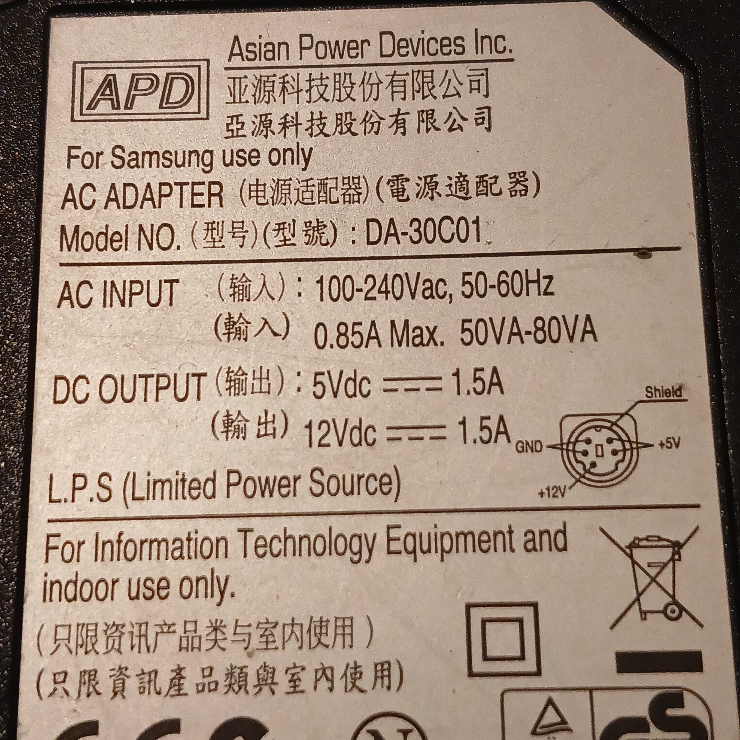 آداپتور 12 و 5 ولت مدل DA-30C01