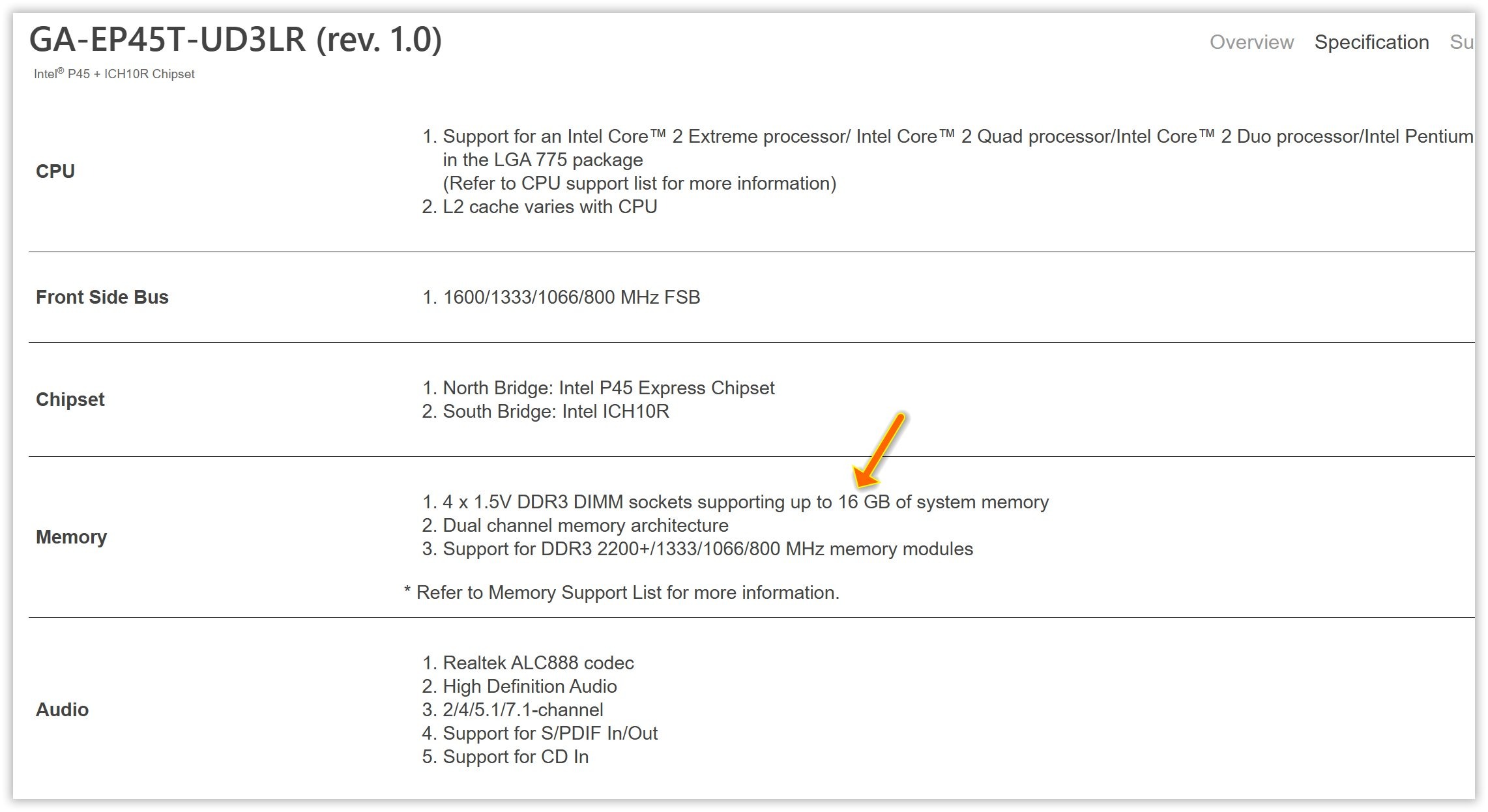مادربرد گیگابایت EP45 T-UD3L  نوع حافظه رم DDR3 و چهار اسلاته ساپورت رم تا 16 گیگ - سوکت 775 سی پی یو کواد ساپورت- چهار پورت USB در پشت