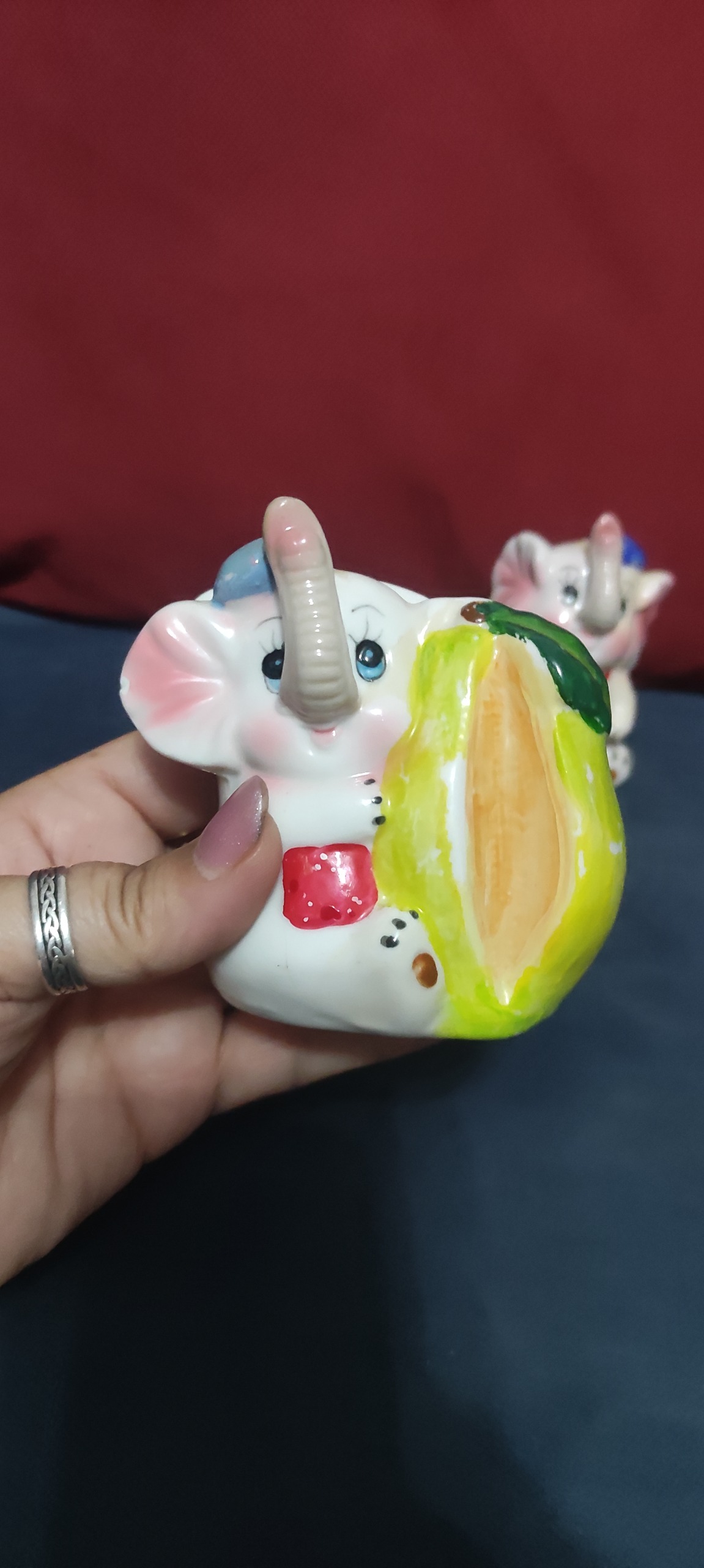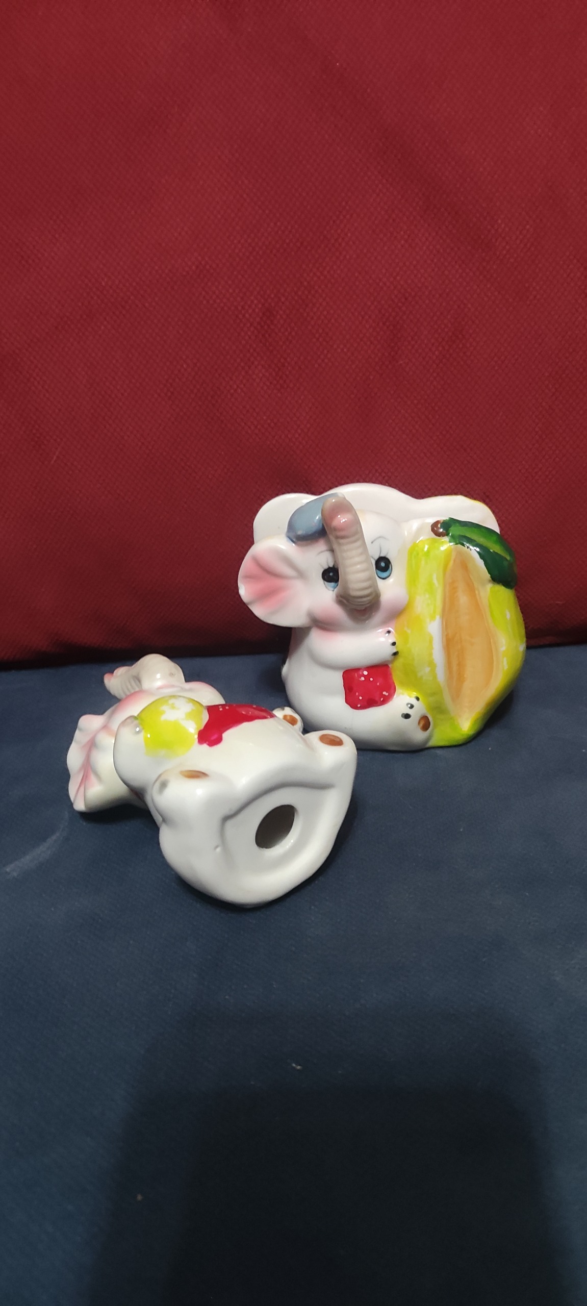 ست جا دستمالی و نمکدان جنس چینی قدیمی طرح فیل