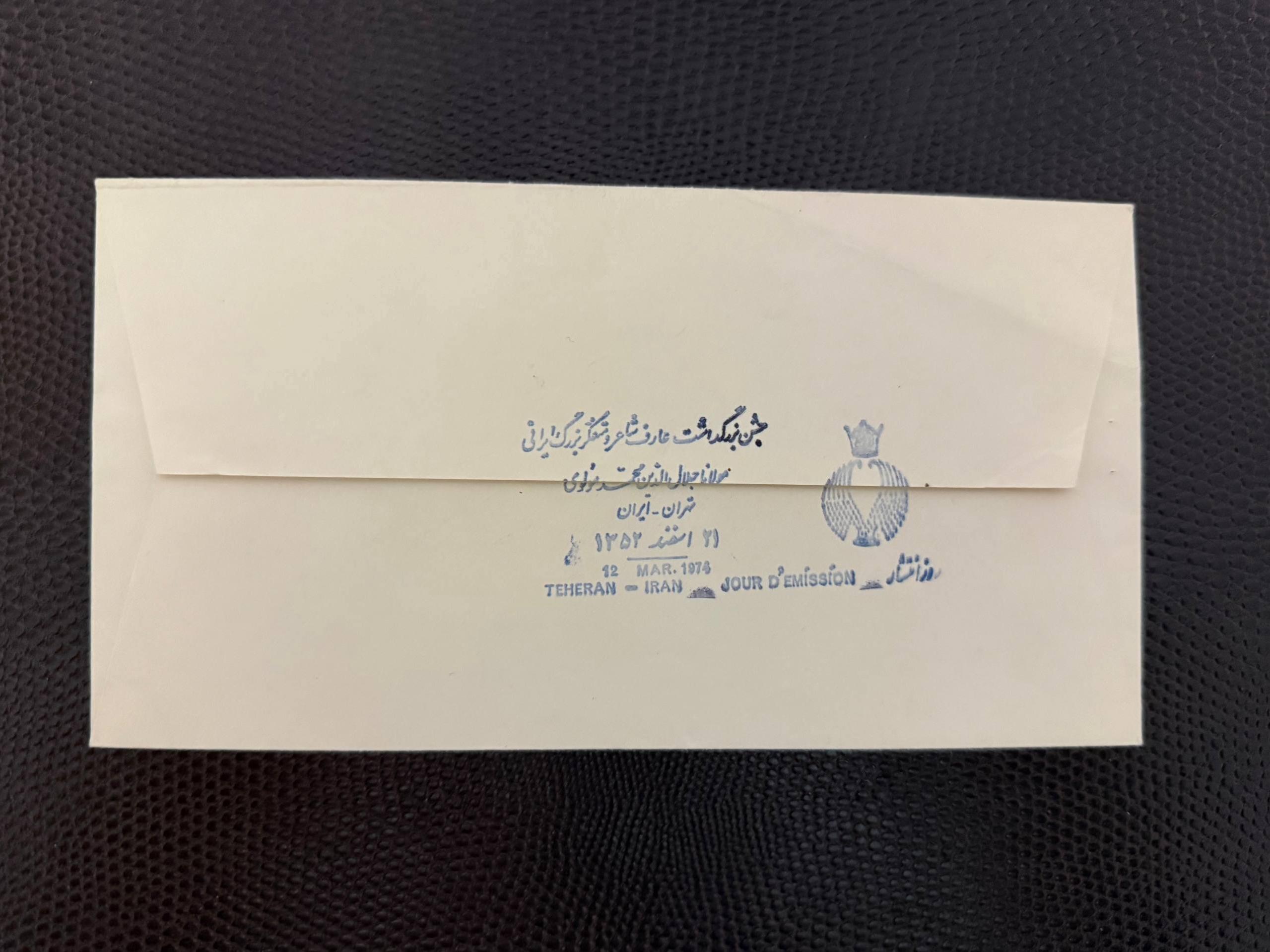 پاکت مهر روز ارزشمند و کمیاب تجلیل از مولانا مولوی