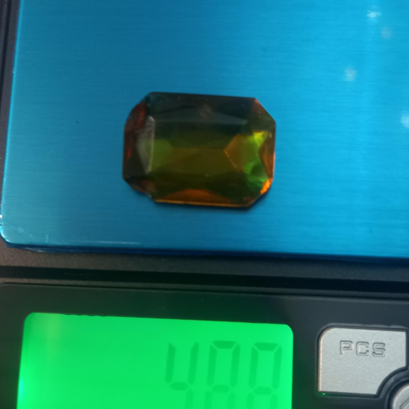 یک عددنگین ستیرین تراش خورده چند وجهی شفافا و تقریبا درشت با وزن روی ترازو نمایش داده شده جهت نگین انگشتر یا آویز گردن البته با گرفتن قاب نقره یا طلا