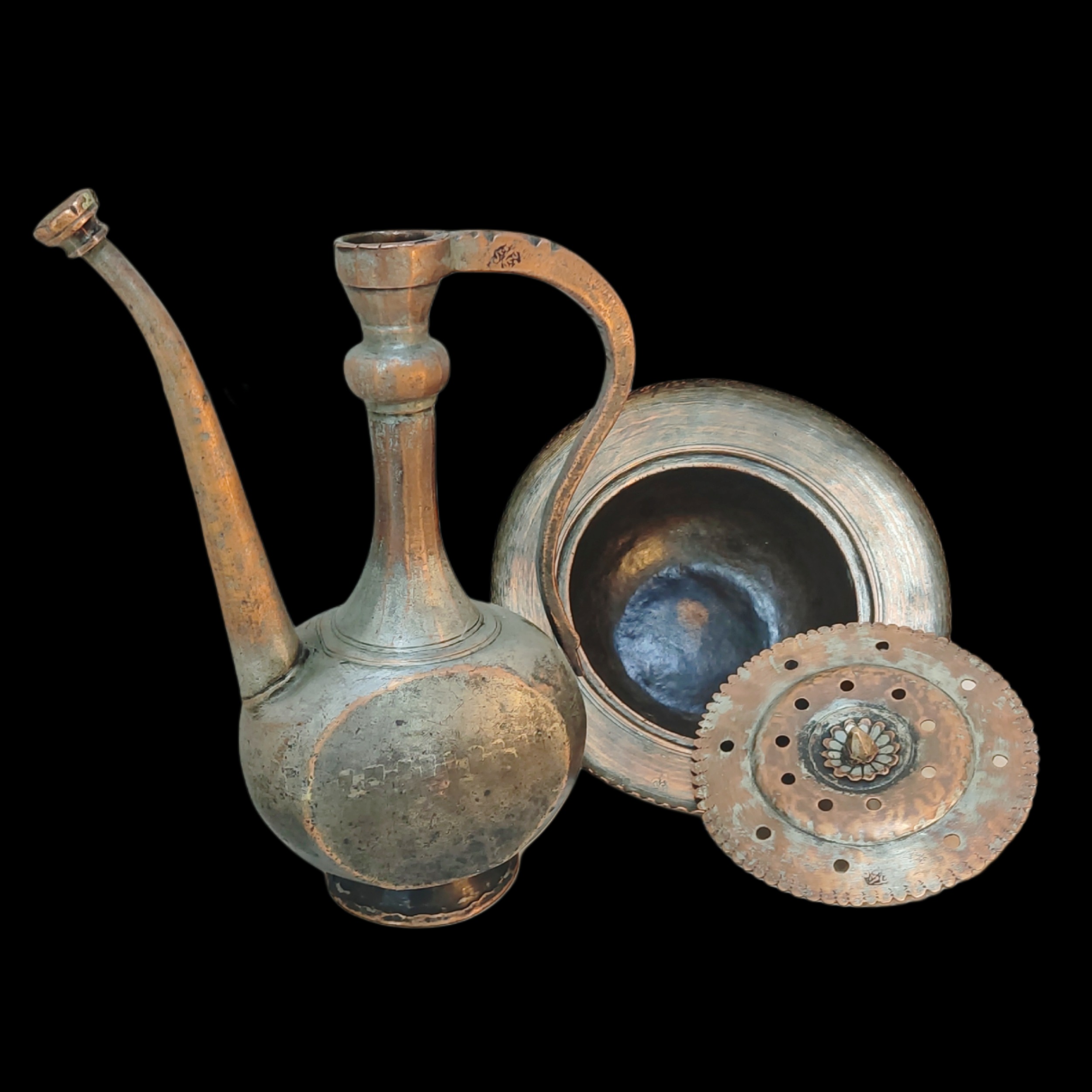 آفتابه لگن مسی قاجاری کلکسیونی ابریق قدیمی عتیقه