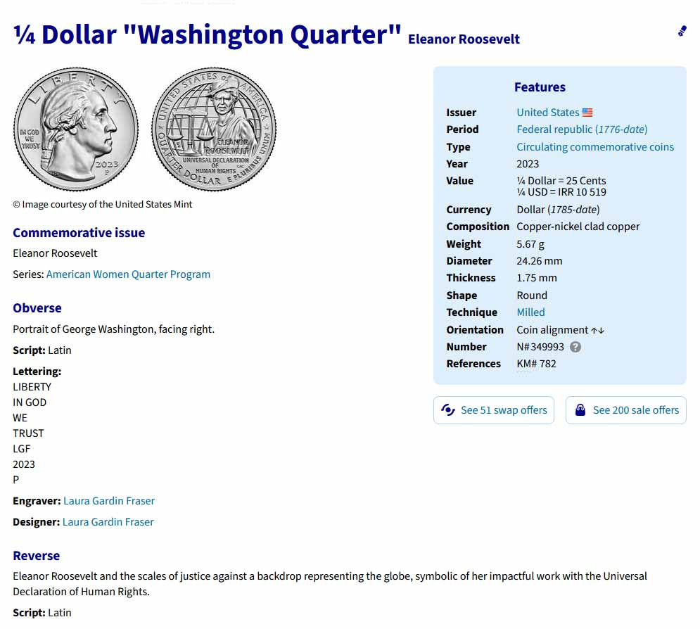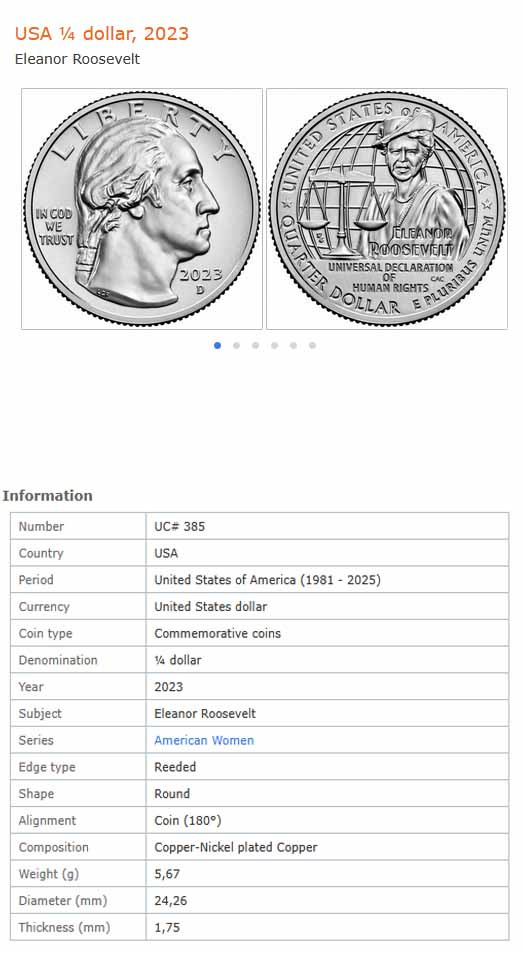 سکه یادبودی کوارتر امریکا 2023 (Eleanor Roosevelt)