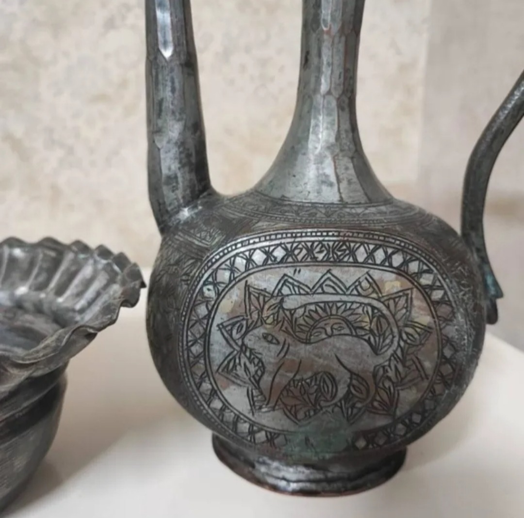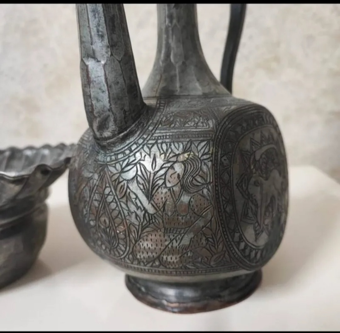 وزنشون باهم 2100، قدشون روی هم در عکس اخر حدود 38 سانت ، قدیمی و پر از قلمکاری با دست بسیار زیبا، درصورت تمایل بفرمایید قبل از خرید عکس های بیشتر و از قسمت های مختلف بفرستم