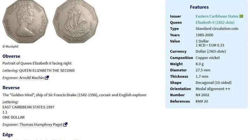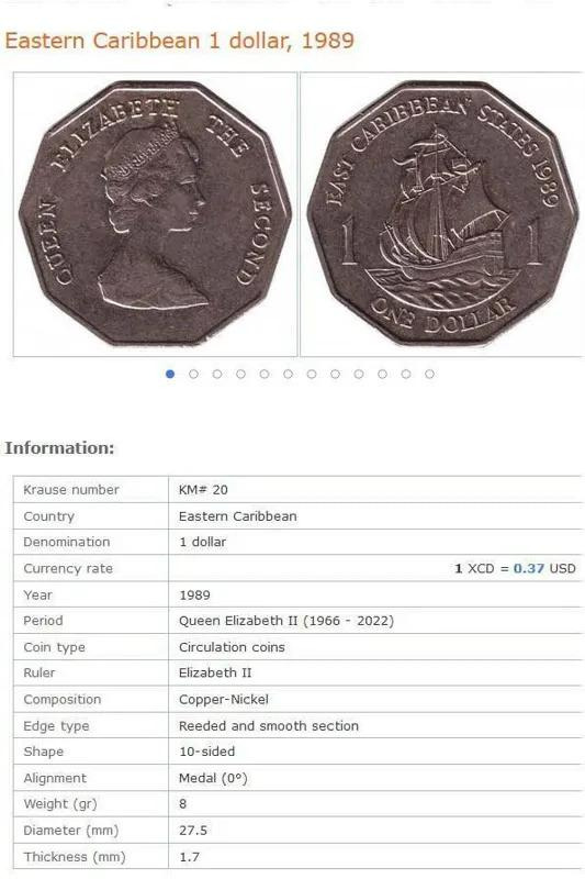 سکه 1 دلار کارائیب شرقی 1989 (نایاب)