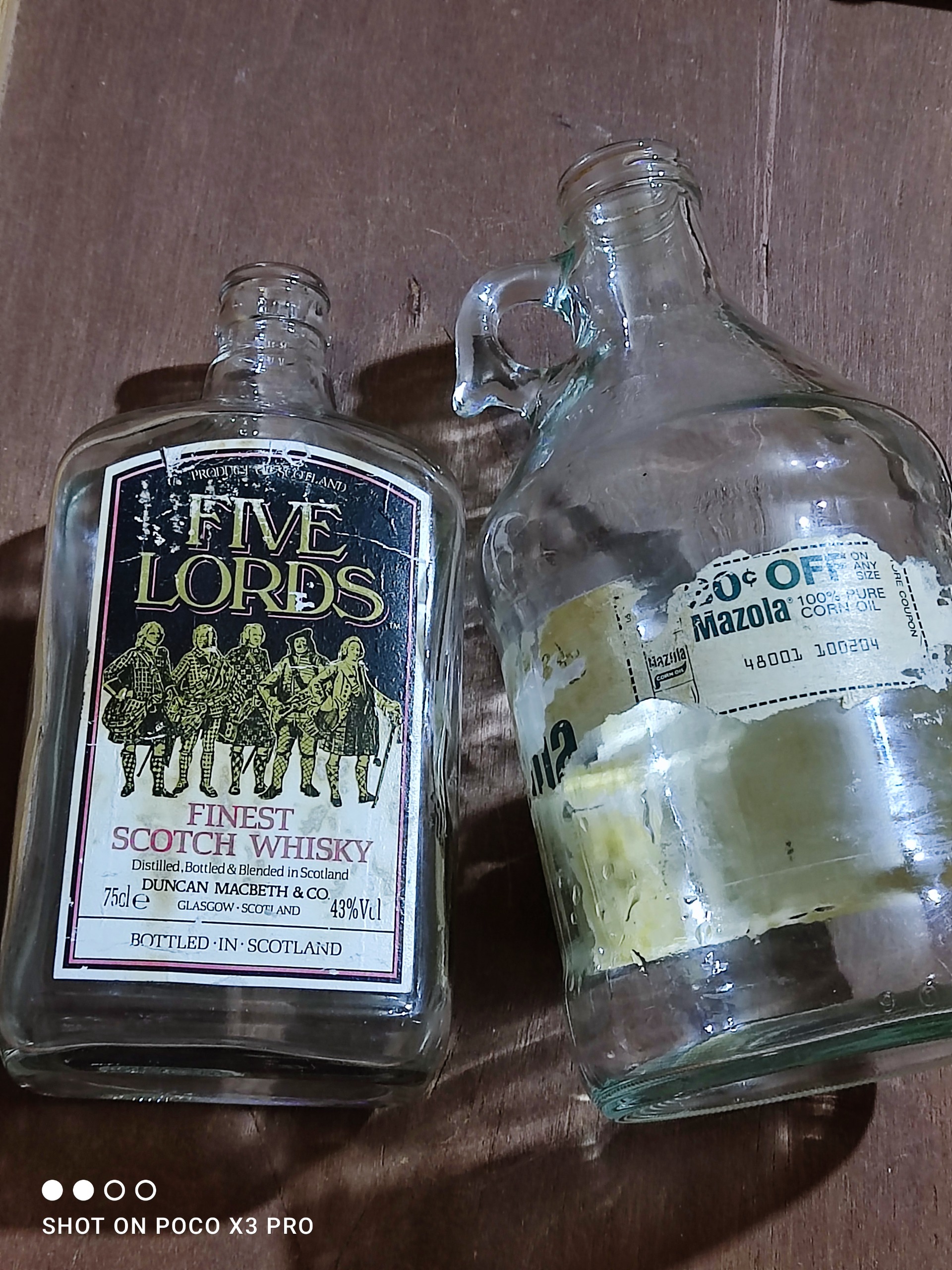 دو عدد بطری شیشه ای قدیمی امریکایی سالم و تمیز و بکر مطابق تصاویر بسیار بسیار زیبا و محکم اسکاتلندی برند جهانی پنج لورد قیمت برای جفتشخ