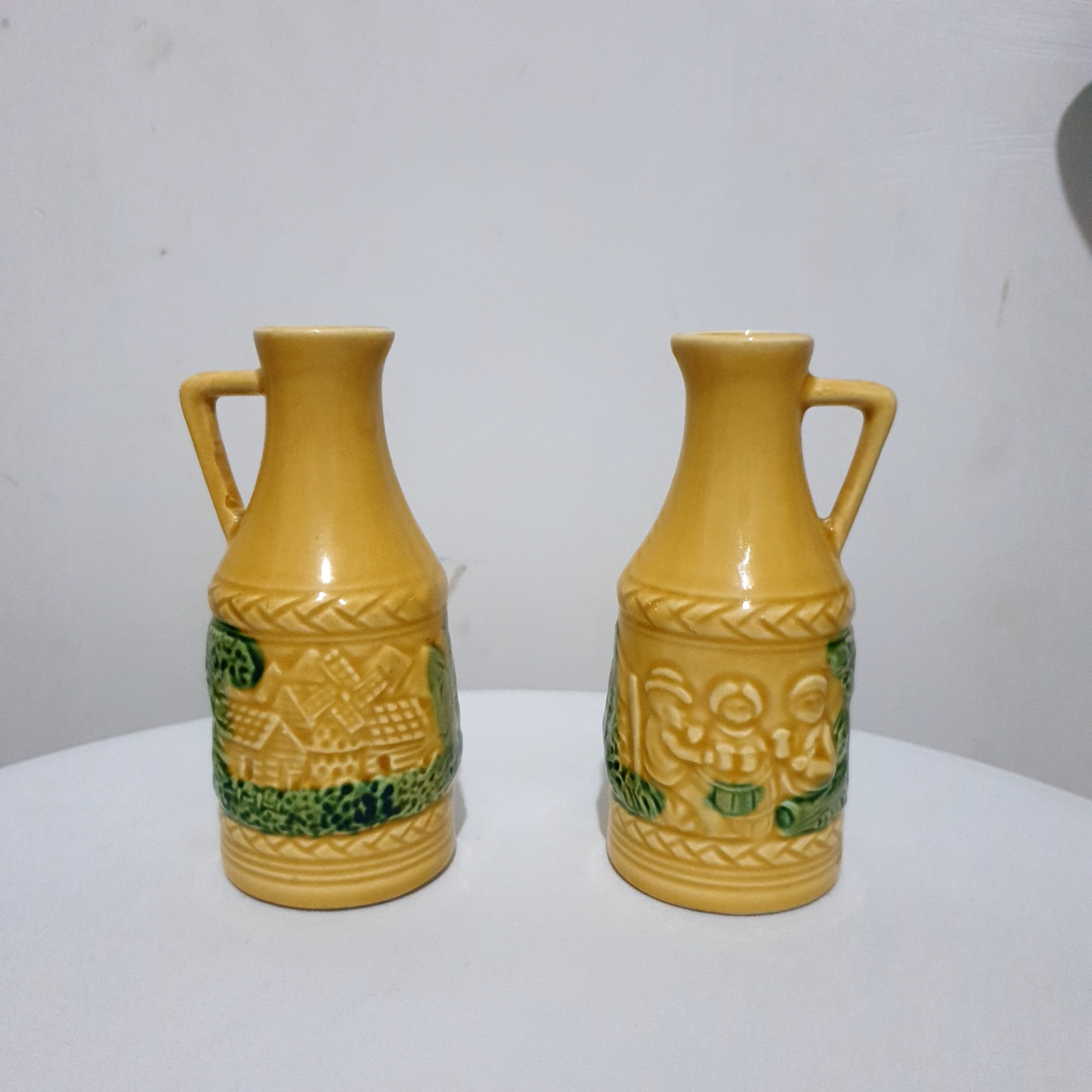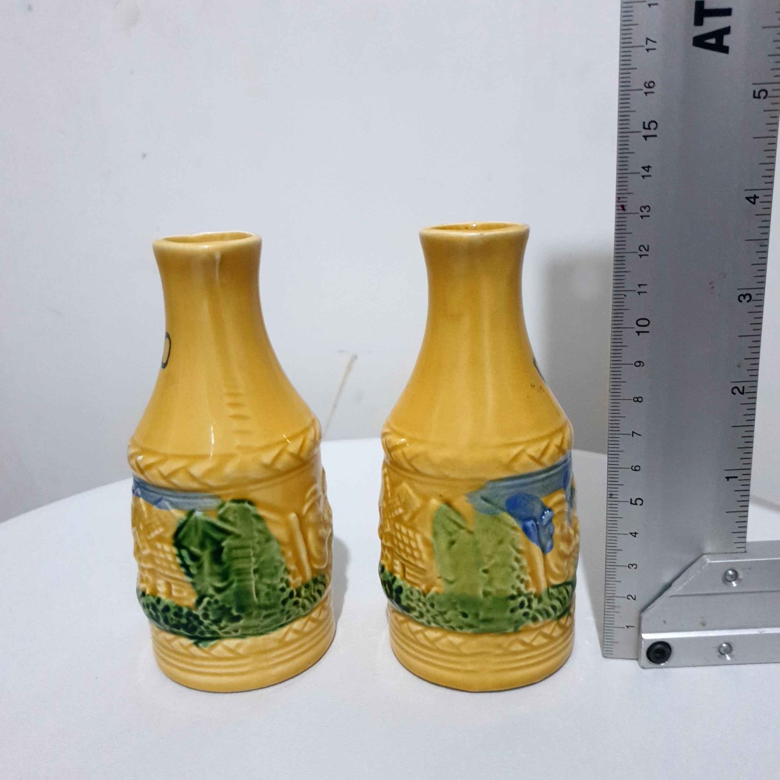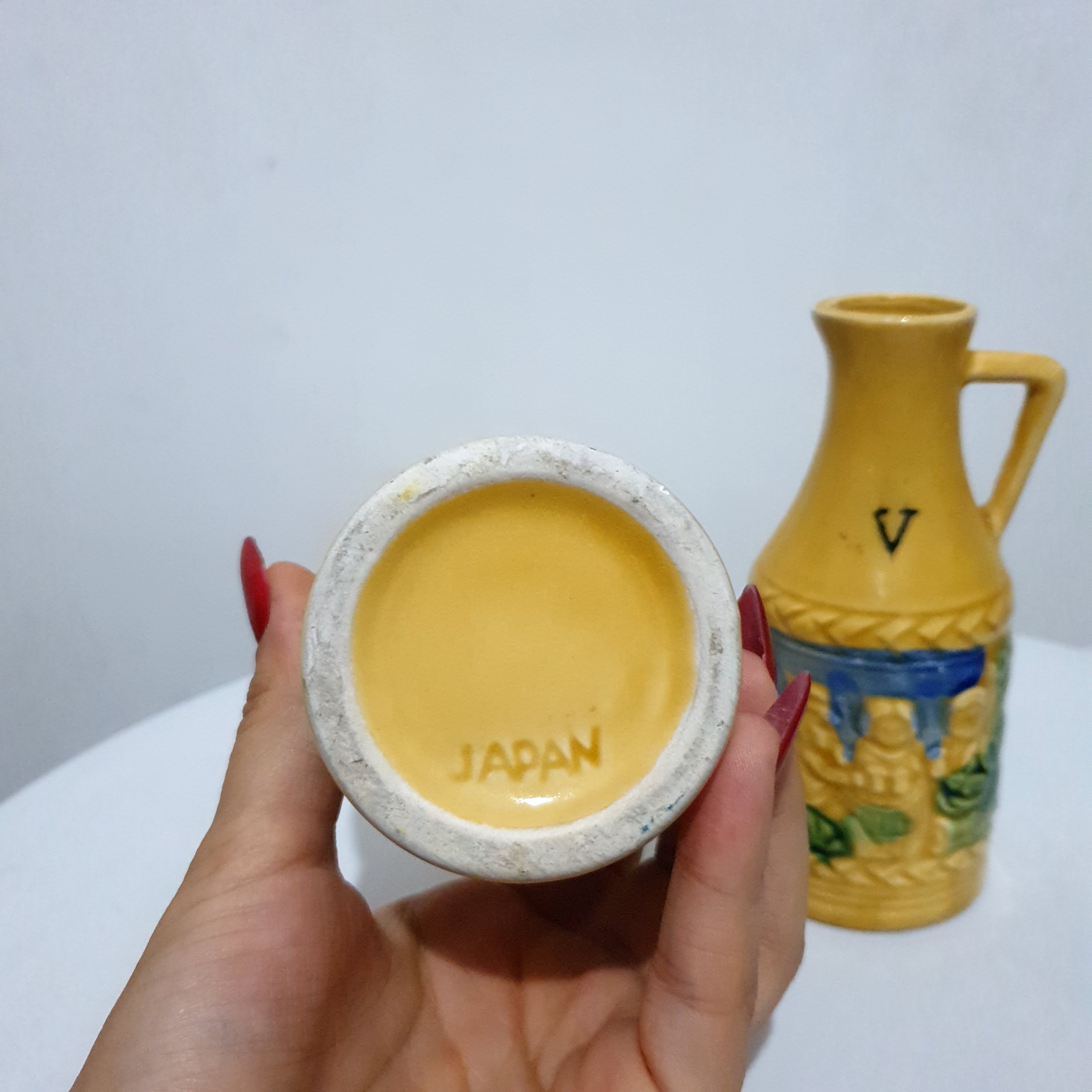 جفت کوزه یا پارچ سفالی قدیمی ژاپنی سایز کوچک
